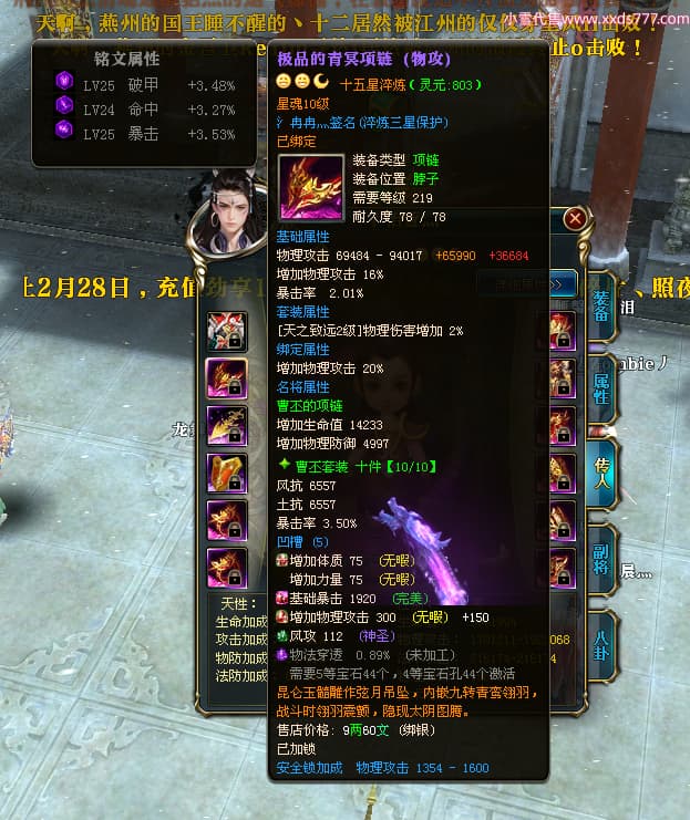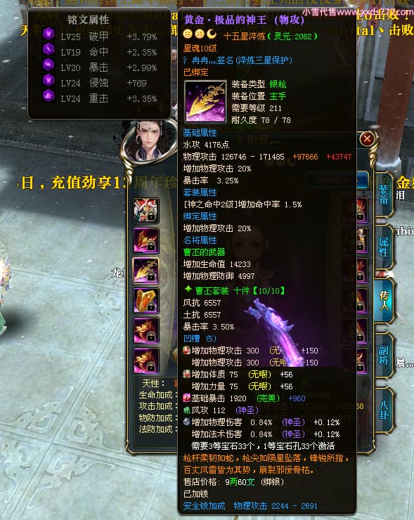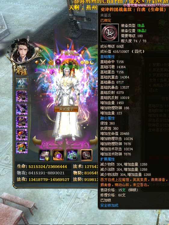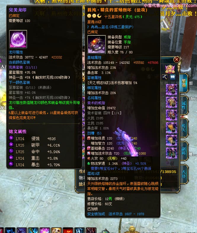 编号W24724 氵冉冉灬 龙舞九州 青州 本国排名23名 22536W战力 人物黄金加强橙15X(6件混沌) 传人极品紫15X 副将精良紫15X 马普通橙13X 极品紫15披风 人物星魂16级 传人星魂9级 副将星魂6级 马星魂11级 人物铭刻15级 人物点亮16星 马铭刻13级 点亮14星 人物紫龙印 马黄龙印 六等单双属性完美无暇神圣石头 黄绿孔 已开完永久18星套