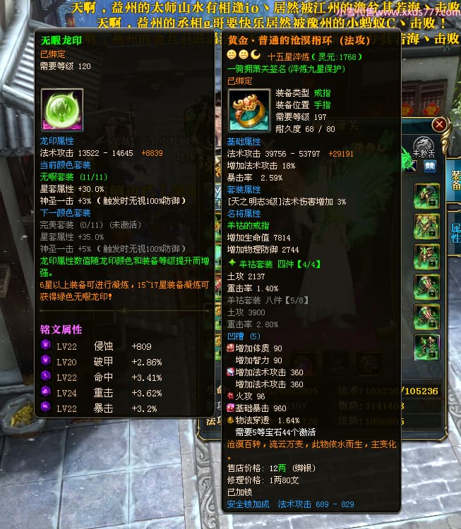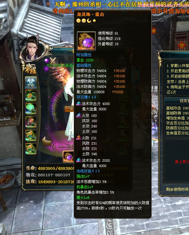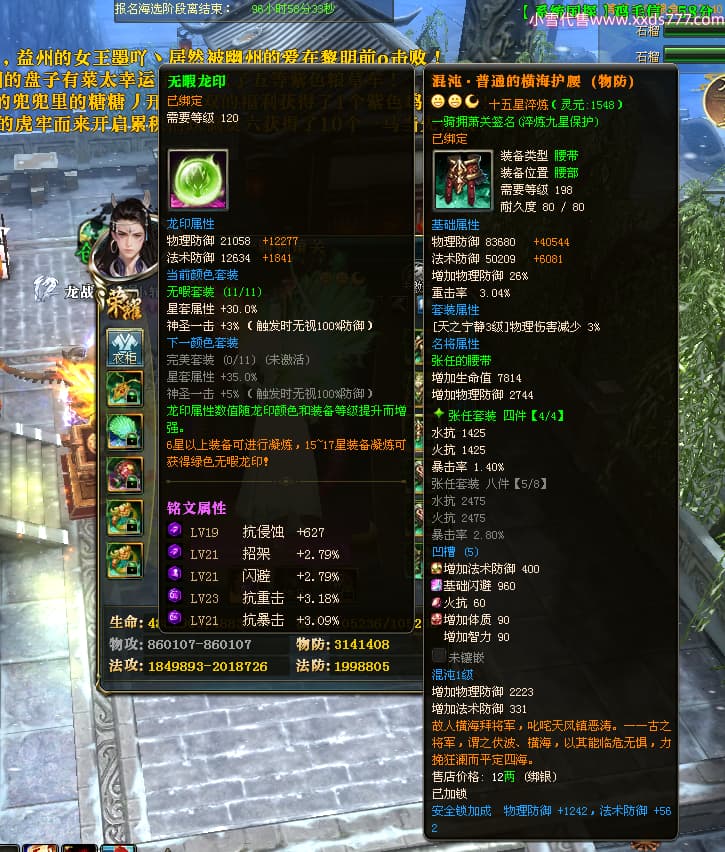 编号L24725 一骑拥萧关 龙战王者 荆州 本国排名22名 4399战力 人物黄金普通橙15X(6件混沌) 马普通橙11X 人物绿龙印 马黄龙印 六等单双属性石头 可以转移百分百安全