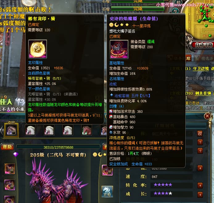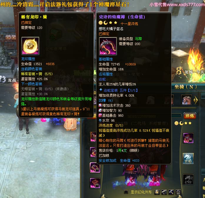 编号L24726 宁ii 龙战王者 荆州 本国排名28名 4120战力 人物黄金普通橙15X(4件混沌) 马史诗紫11X 人物绿龙印(1件紫龙印) 马黄龙印 六等单双属性石头 可以转移百分百安全