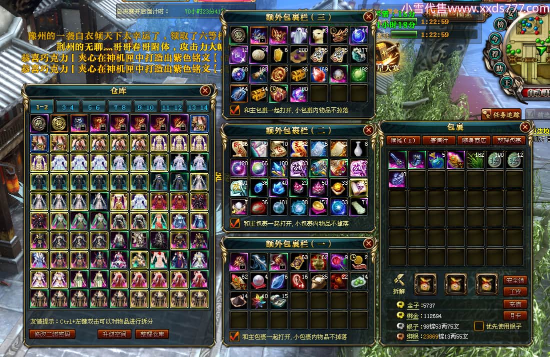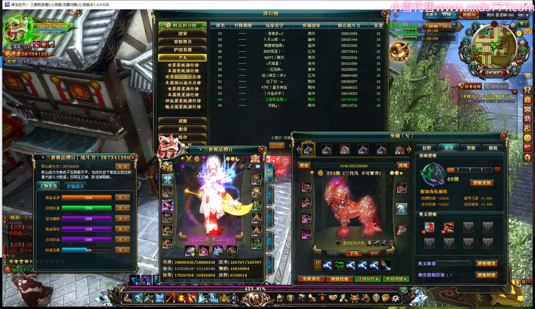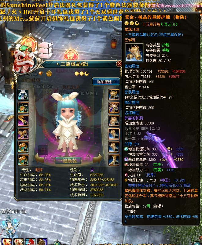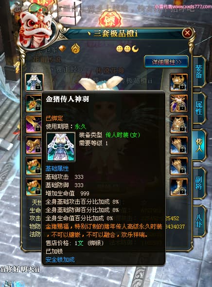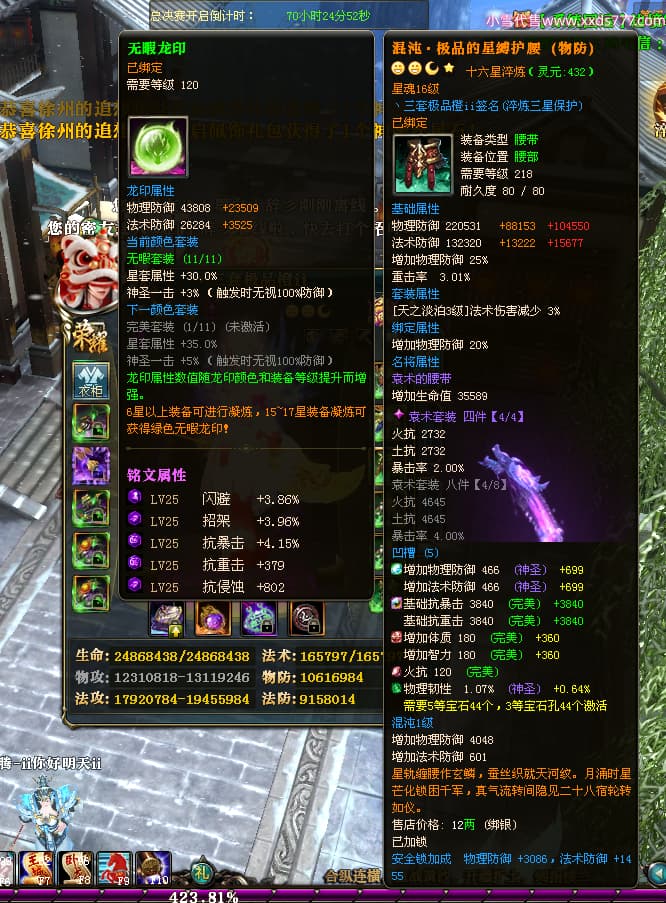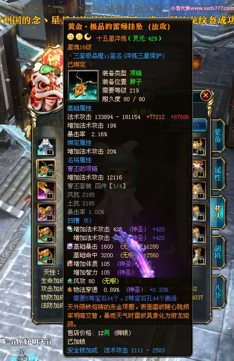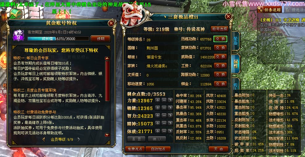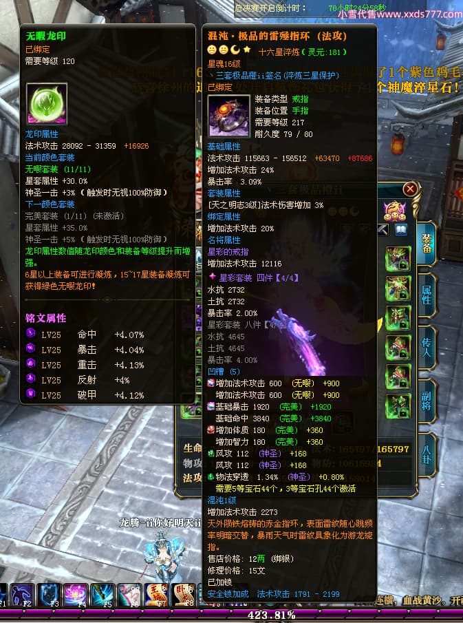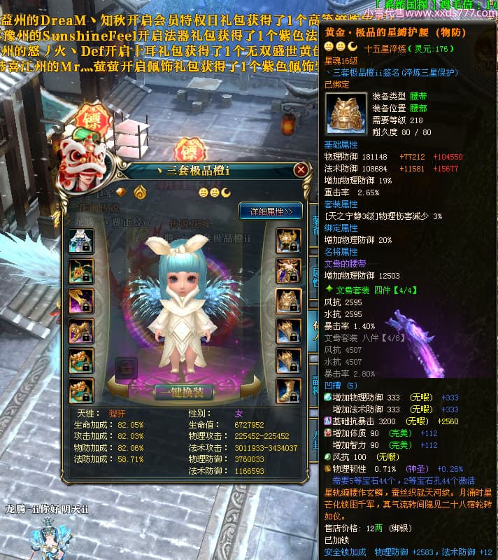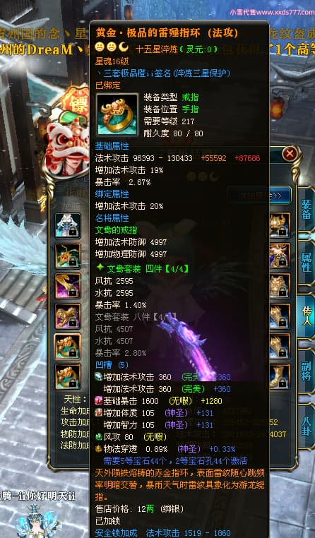 编号T25064 丶三套极品橙ii 龙腾问鼎 荆州 世界排名64名 28734W战力 人物黄金极品橙15X(1件18X9件混沌) 传人黄金极品橙15X 副将史诗紫15X 马黄金极品橙13X 极品紫15披风 人物星魂16级 传人星魂16级 副将星魂6级 马星魂16级 人物铭刻1件17级2件16级其余15级 点亮16星 马铭刻15级 点亮14星 人物绿龙印(1件紫龙印) 马绿龙印 六等单双属性完美无暇神圣石头 黄绿孔 可以转移百分百安全