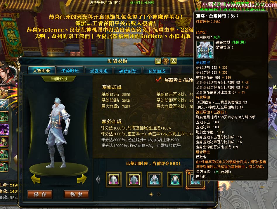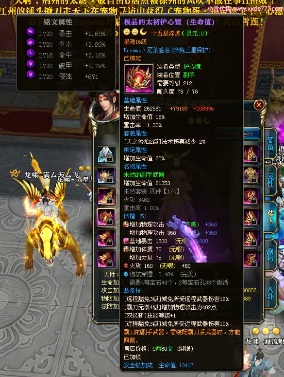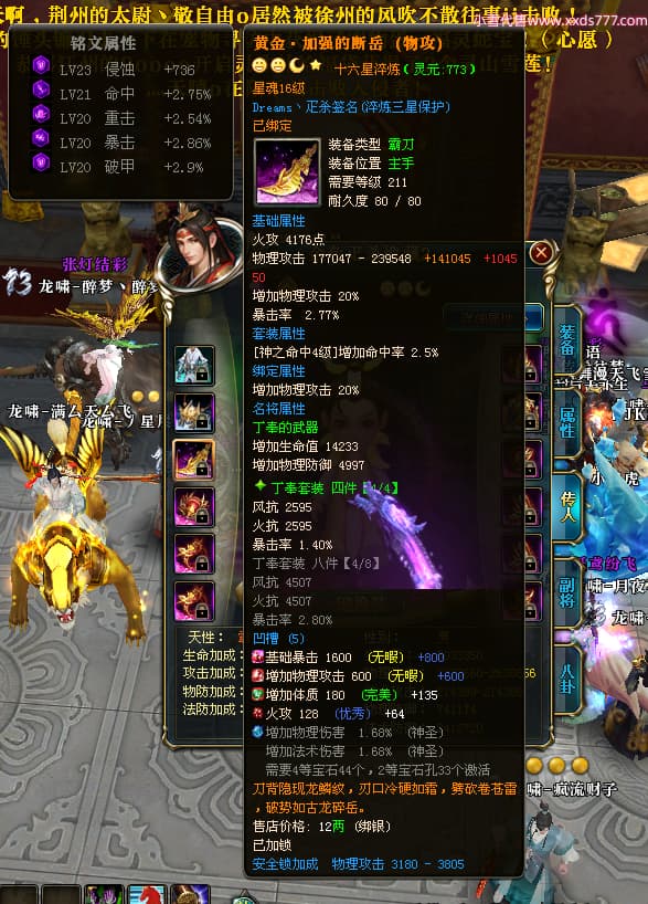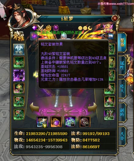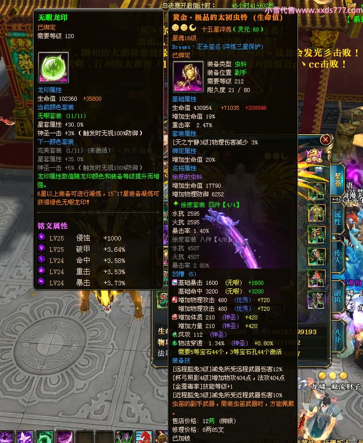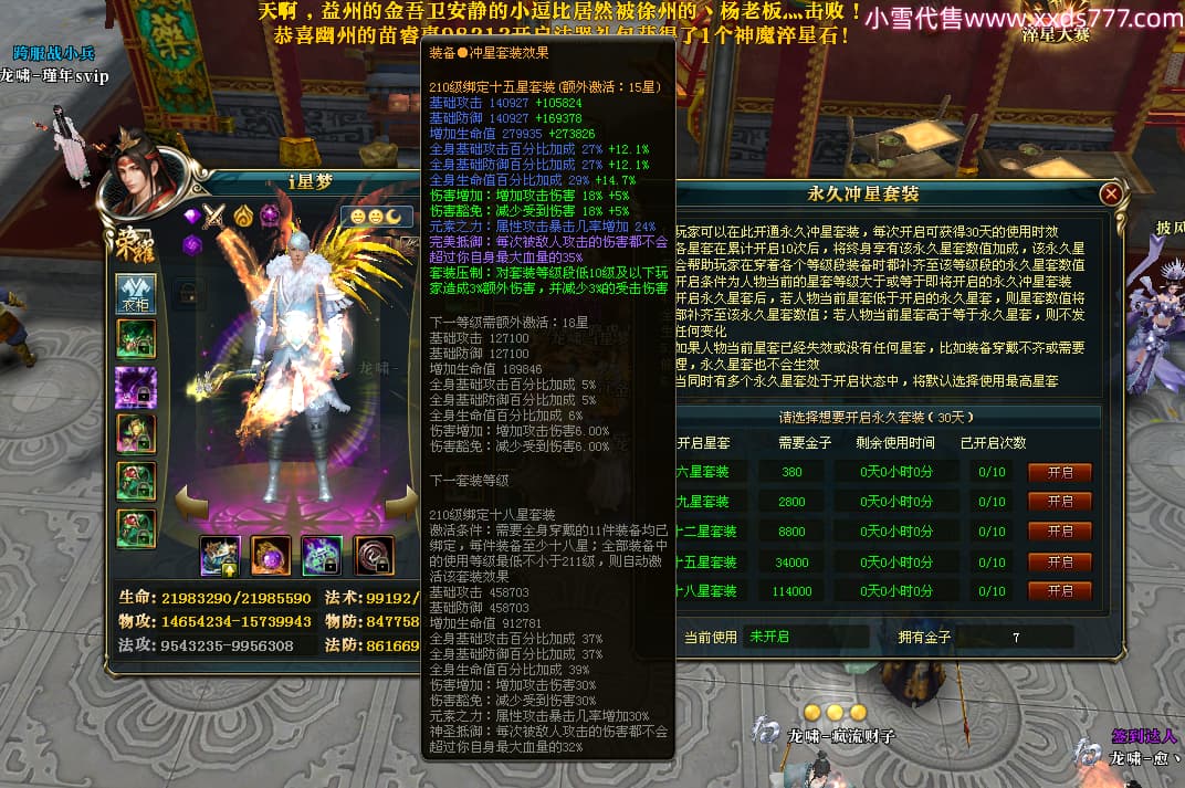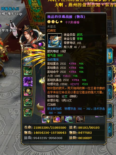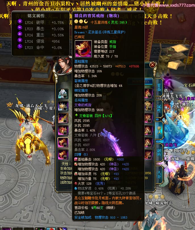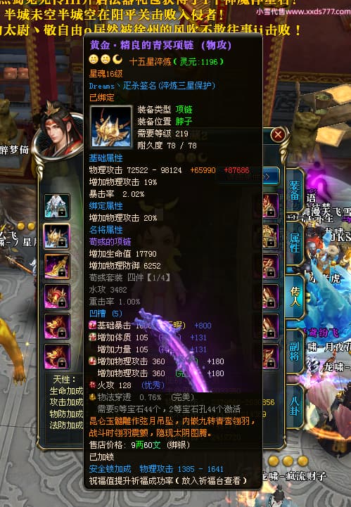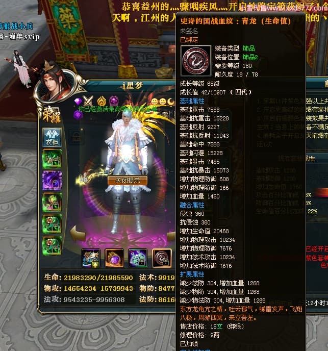 编号X25073 i星梦 龙啸风云 益州 本国排名27名 22322W战力 人物黄金极品橙15X(3件18X8件混沌) 传人精良紫15X 副将史诗紫12X 马普通橙12X 极品紫16披风 人物星魂16级 传人星魂15级 副将星魂6级 马星魂16级 人物铭刻1件18级5件16级其余15级 点亮16星 马铭刻12级 点亮12星 人物绿龙印(1件紫龙印) 马黄龙印(1件绿龙印) 六等单双属性神圣完美无暇石头 黄绿孔