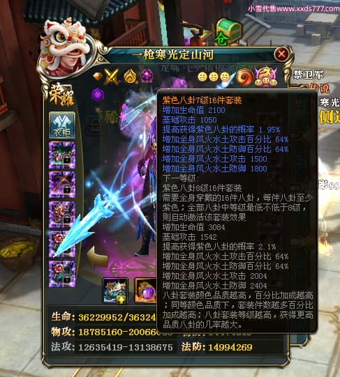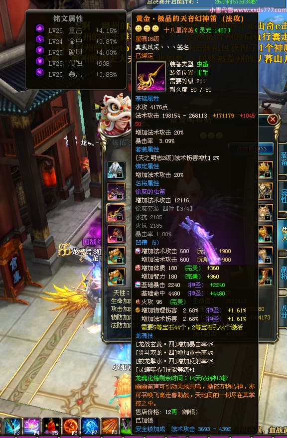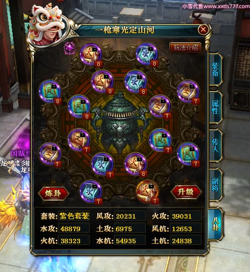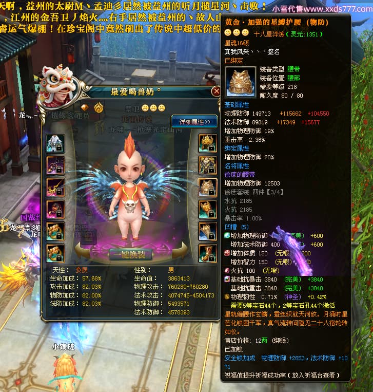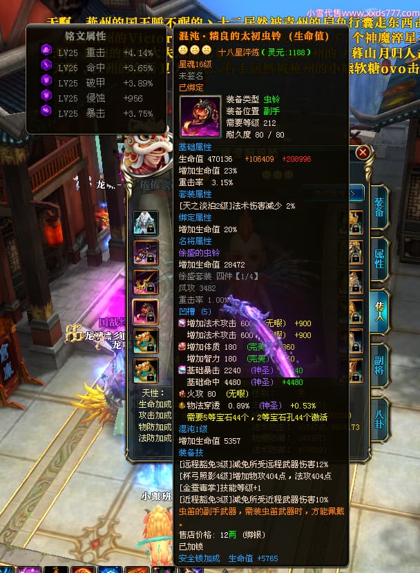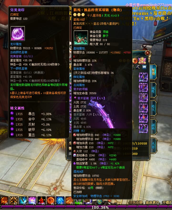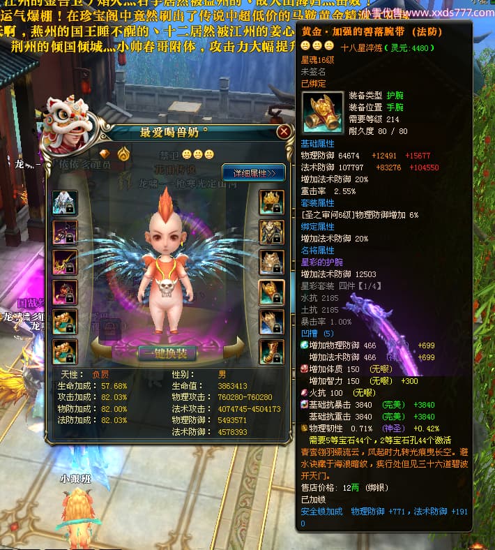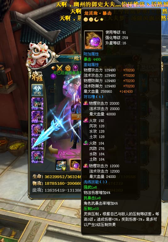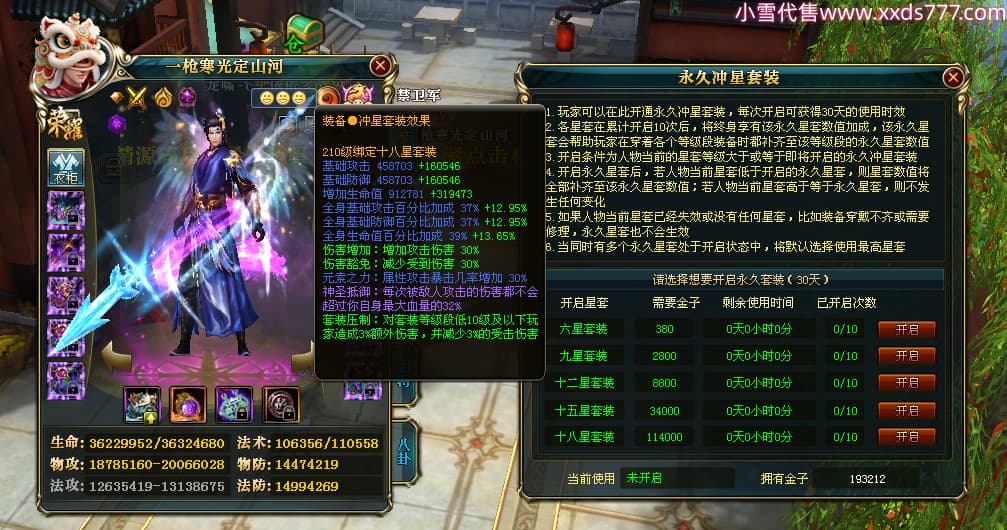 编号X25079 一枪寒光定山河 龙啸风云 荆州 世界排名15名 36636W战力 人物混沌极品橙18X 传人黄金加强橙18X 副将加强橙12X 马黄金极品橙13X(双潜能50级36级) 极品紫16披风 人物星魂16级 传人星魂16级 副将星魂9级 马星魂16级 人物铭刻18级 人物点亮18星 马铭刻3件14级其余13级 点亮14星 人物紫龙印 马绿龙印 六等单双属性神圣完美无瑕石头 绿孔 马庄那些都是卡着最后一手