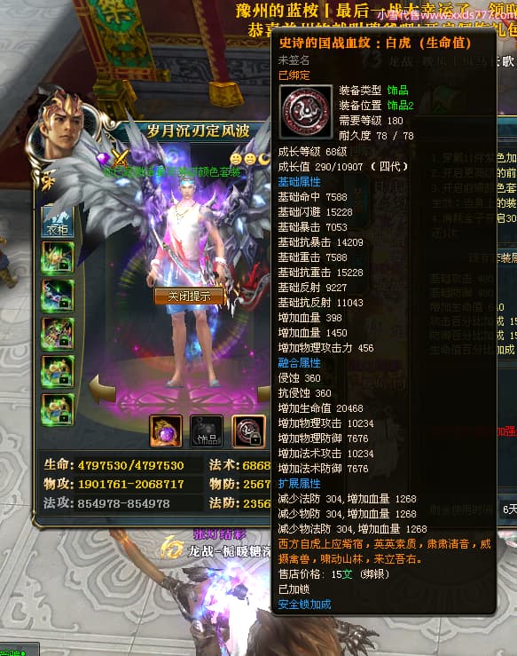 编号L25082 岁月沉刃定风波 龙战王者 青州 4547W战力 人物黄金普通橙15X(5件混沌) 马普通橙10X 人物绿龙印 马黄龙印 六等单双属性石头