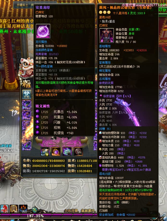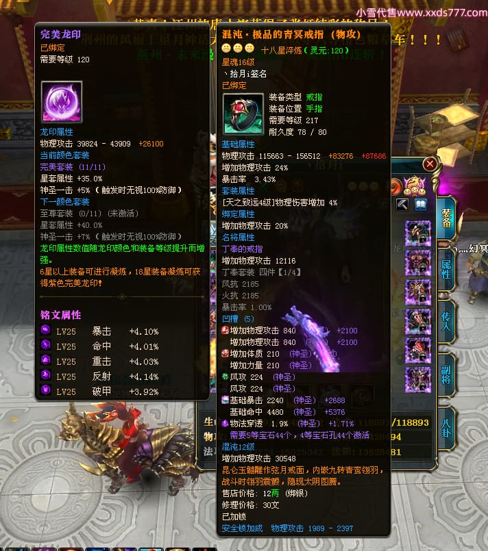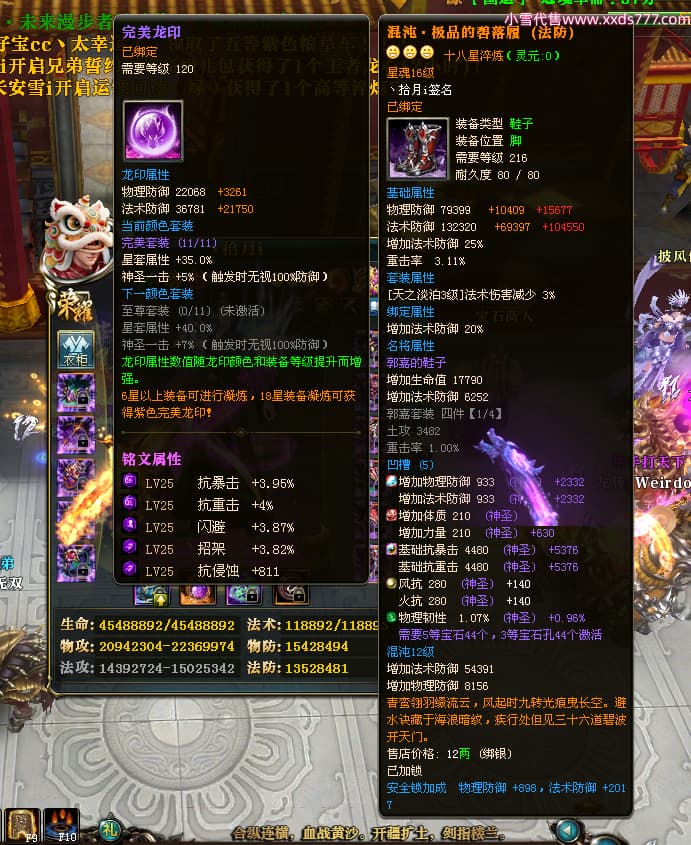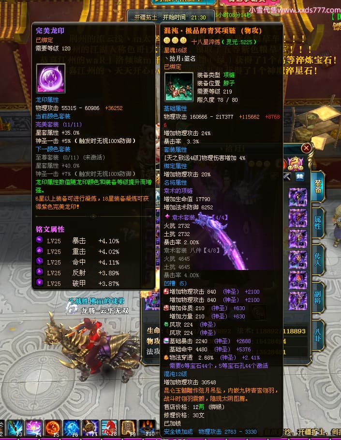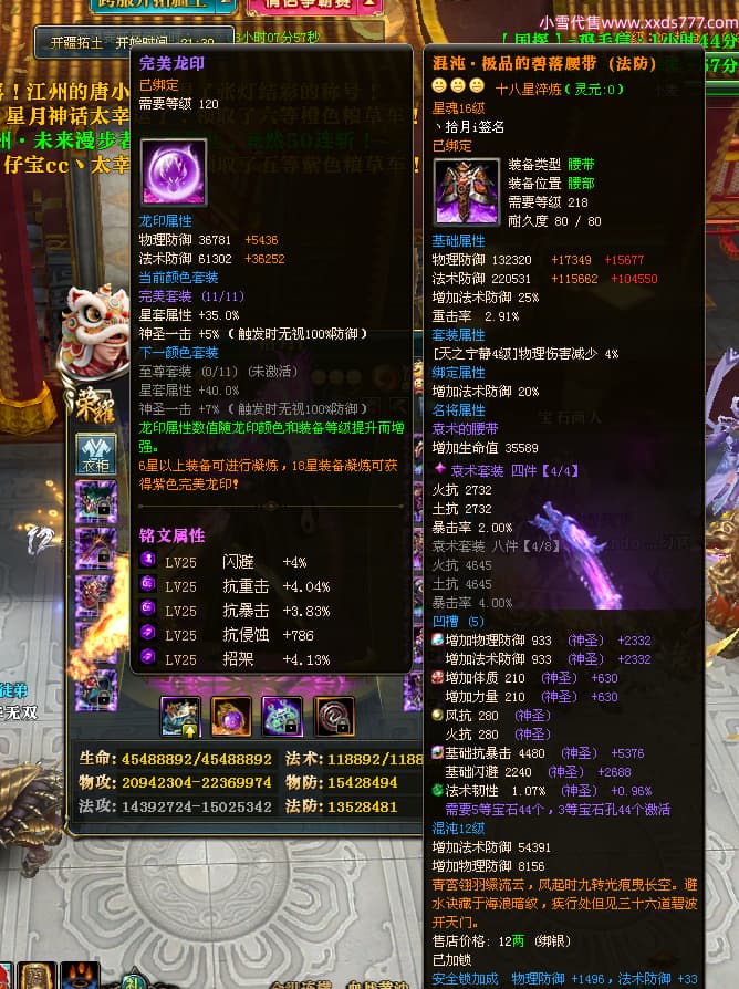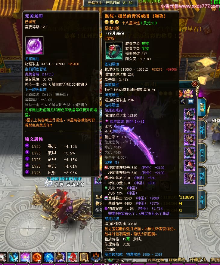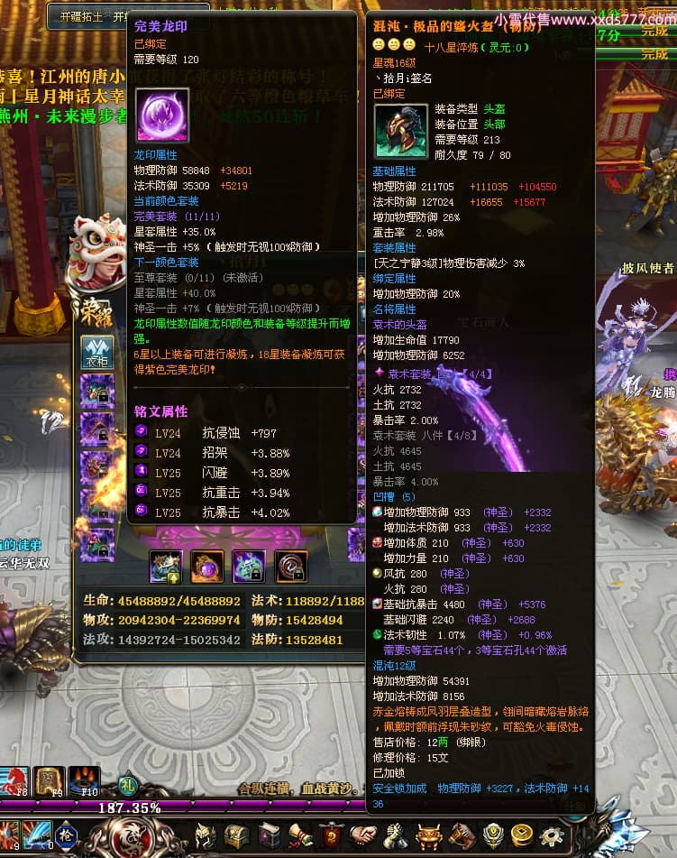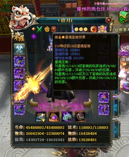 编号T25090 丶拾月i 龙腾问鼎 荆州 世界排名16名 43093W战力 人物混沌极品橙18X 传人黄金普通橙18X(7件混沌) 副将黄金普通橙15X 马混沌精良橙14X(双潜能63级60级) 史诗紫17披风 人物星魂16级 传人星魂16级 副将星魂16级 马星魂16级 人物铭刻18级 人物点亮18星 马铭刻2件18级1件17级其余16级 点亮1件16星其余14星 人紫龙印 马绿龙印 六等单双属性神圣石头 紫孔