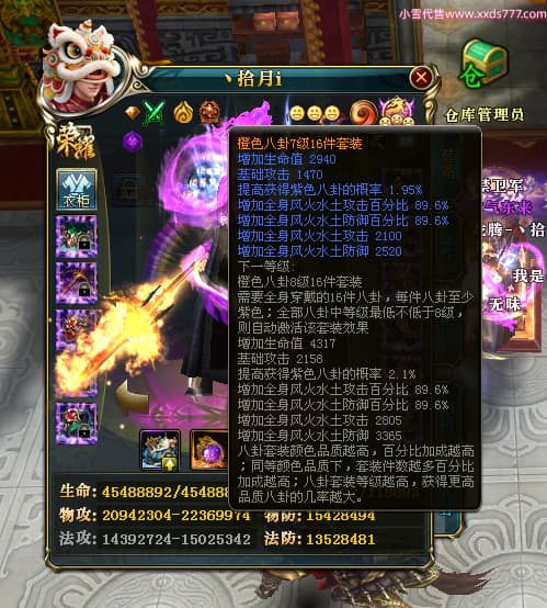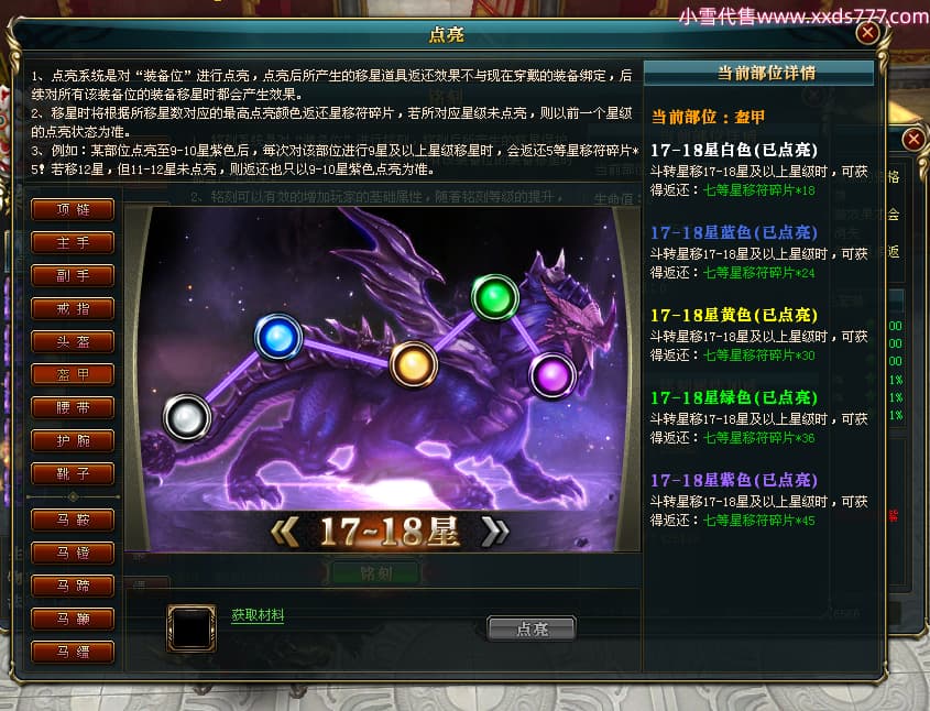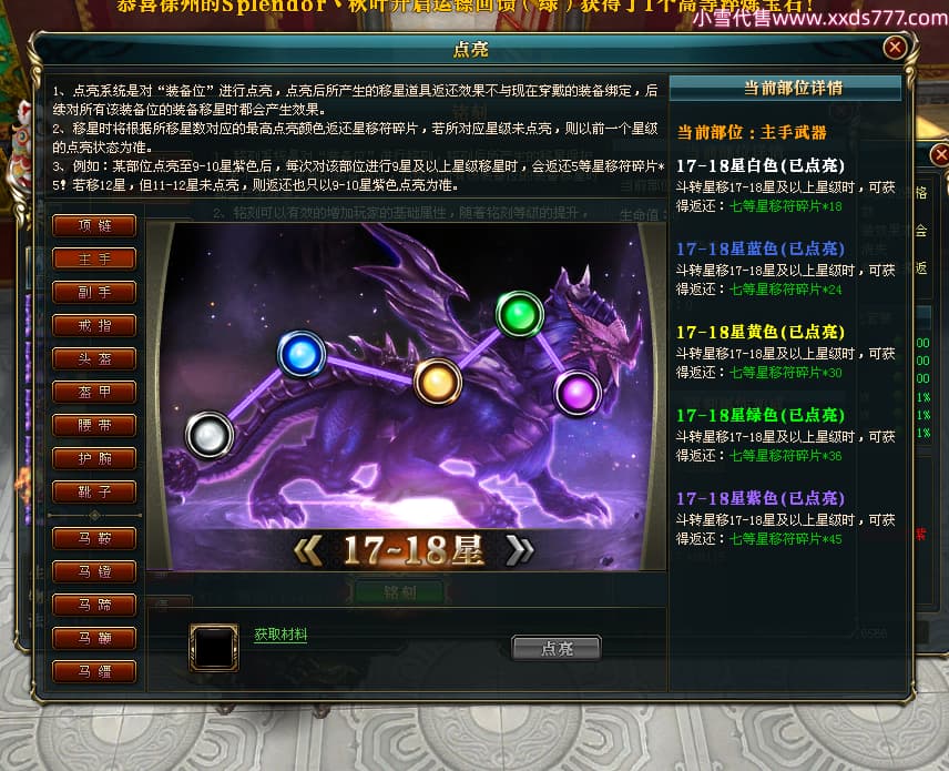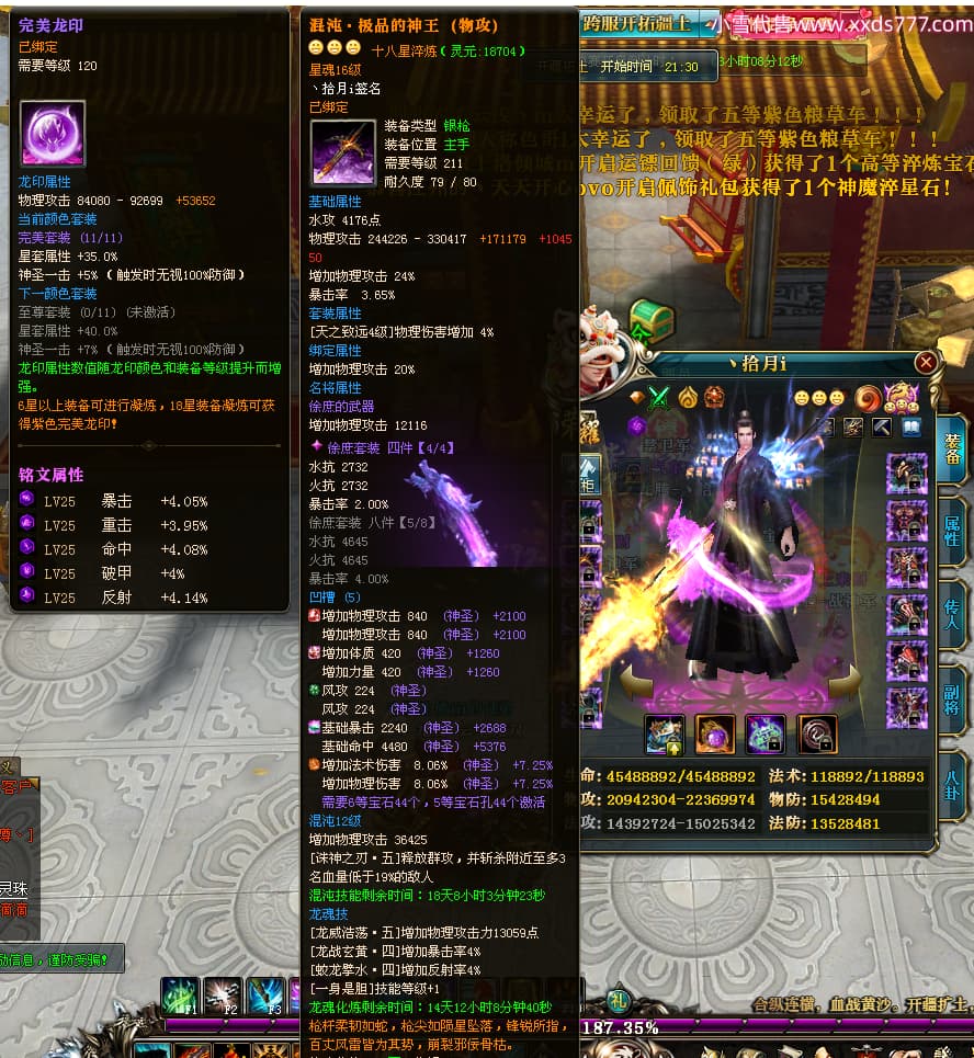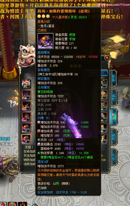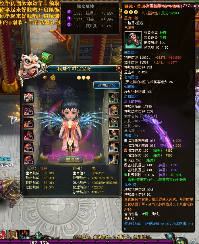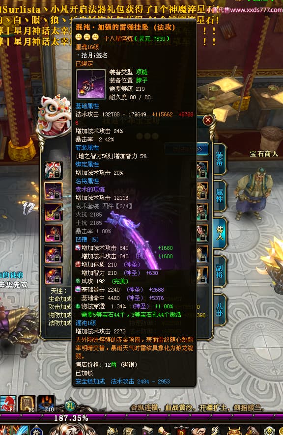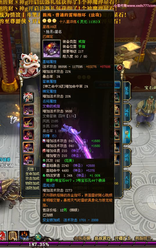编号T25090 丶拾月i 龙腾问鼎 荆州 世界排名16名 43093W战力 人物混沌极品橙18X 传人黄金普通橙18X(7件混沌) 副将黄金普通橙15X 马混沌精良橙14X(双潜能63级60级) 史诗紫17披风 人物星魂16级 传人星魂16级 副将星魂16级 马星魂16级 人物铭刻18级 人物点亮18星 马铭刻2件18级1件17级其余16级 点亮1件16星其余14星 人紫龙印 马绿龙印 六等单双属性神圣石头 紫孔