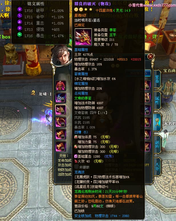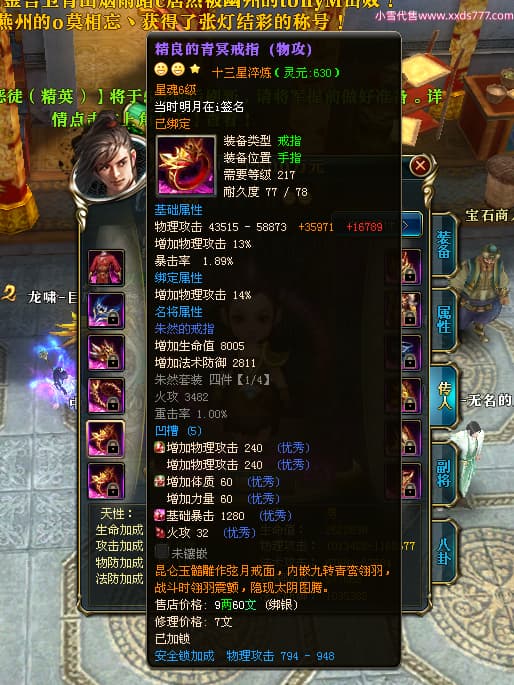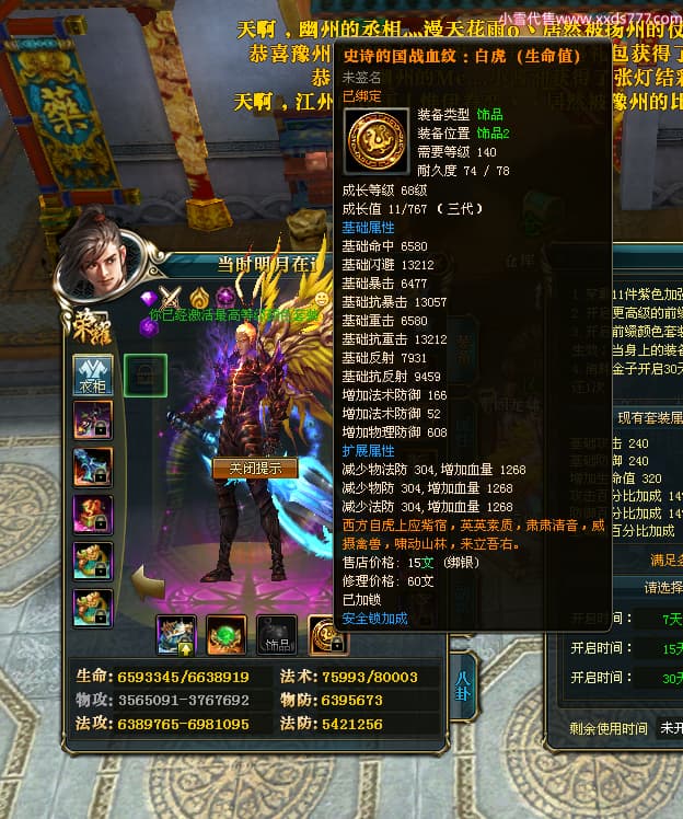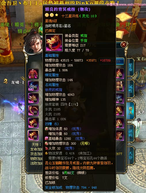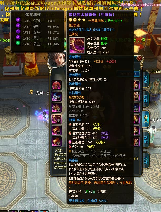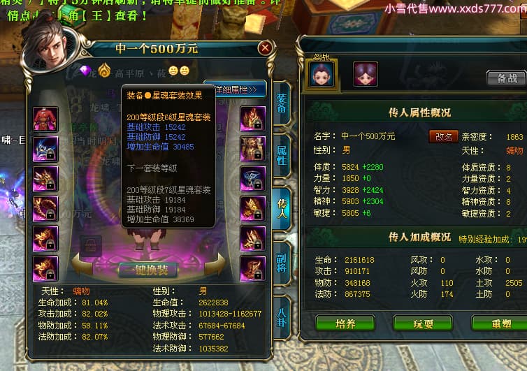 编号X25092 当时明月在i 龙啸风云 燕州 本国排名104名 8434W战力 人物精良紫12X(4件15X4件混沌) 传人精良紫12X 马极品紫9X 加强紫12X披风 人物星魂14级 传人6级 副将5级 马6级 人物铭刻7件14级其余12级 点亮7件14星其余12星 马铭12级 点亮10星 人物绿龙印 马蓝龙印 五等单双属性神圣完美无暇石头