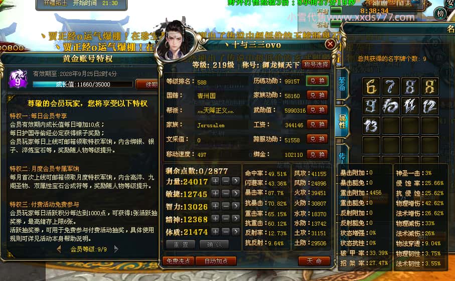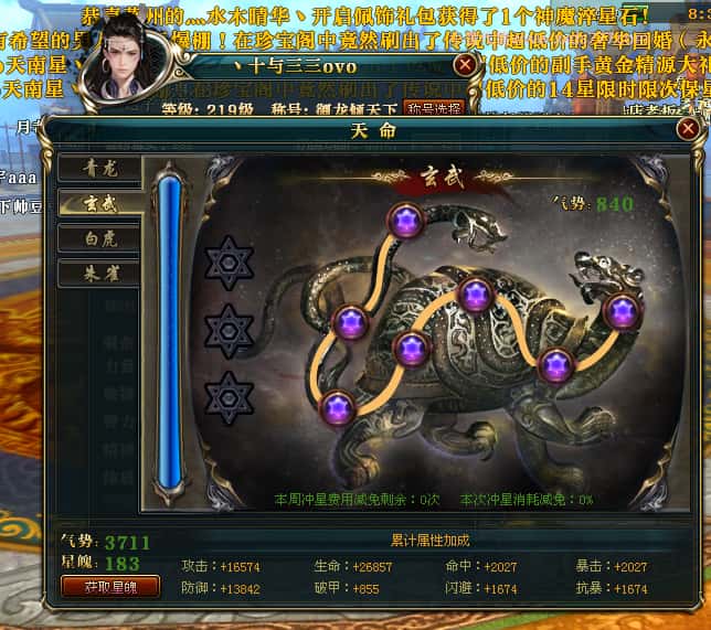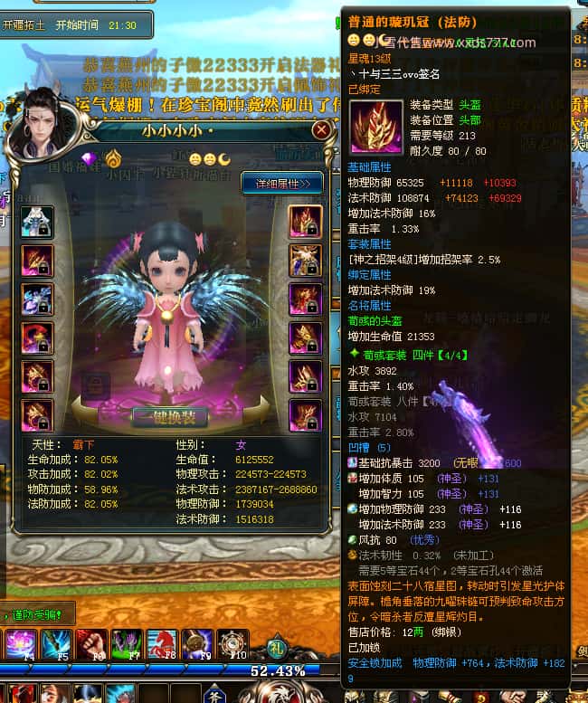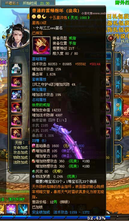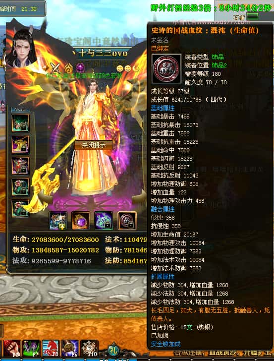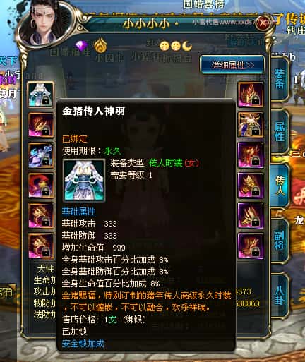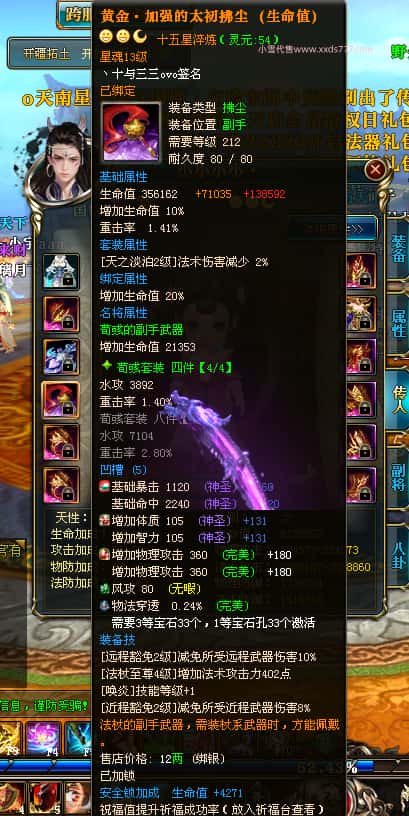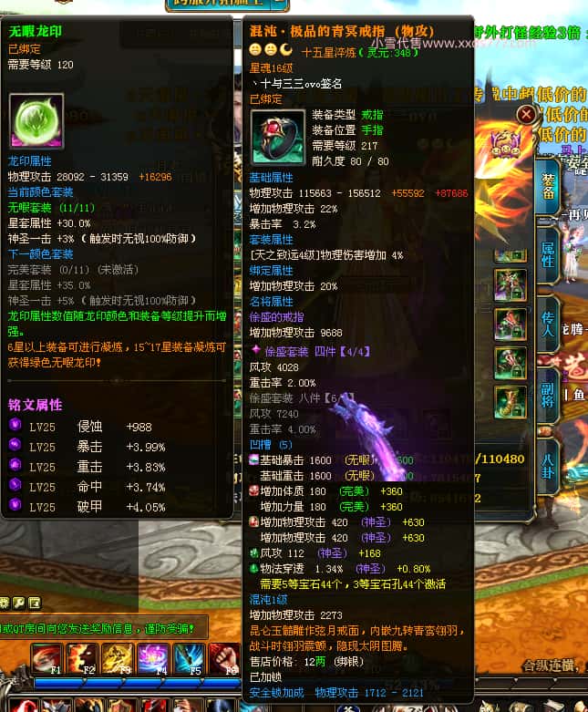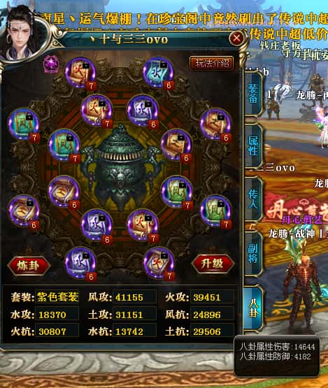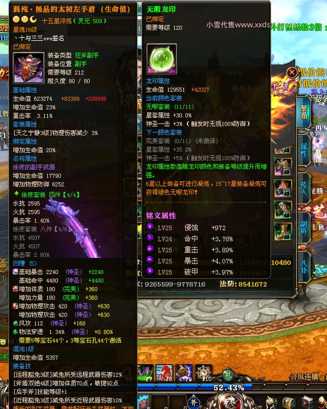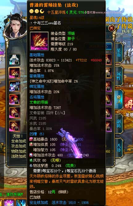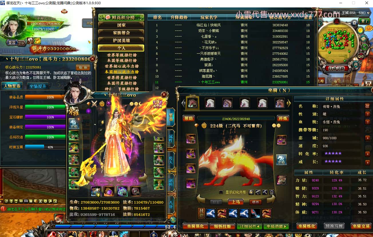 编号T25131 丶十与三三ovo 龙腾问鼎 燕州 本国排名11名 23320W战力 人物黄金极品橙15X(靴子黄金普通橙15X 8件混沌) 传人史诗紫15X 副将精良紫12X 马黄金精良橙12X 精良紫15披风 人物星魂16级 传人星魂12级 副将星魂6级 马星魂16级 人物铭刻(项链/主手/副手/盔甲16级)其余15级 点亮16星 马铭刻1件14级4件12级 点亮12星 人物绿龙印 马黄龙印 六等单双属性完美神圣石头 黄绿孔 已开启永久15星套 可以转移百分百安全