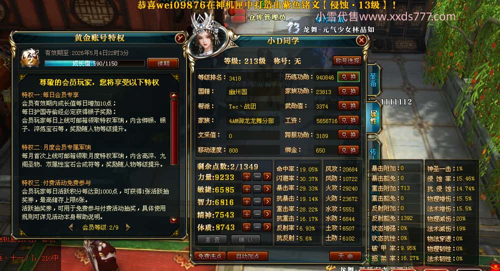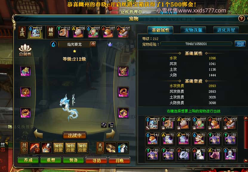 编号W25137 小D同学 龙舞九州 幽州 213级 人物12X 马9X 人物点亮12