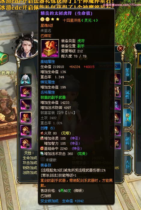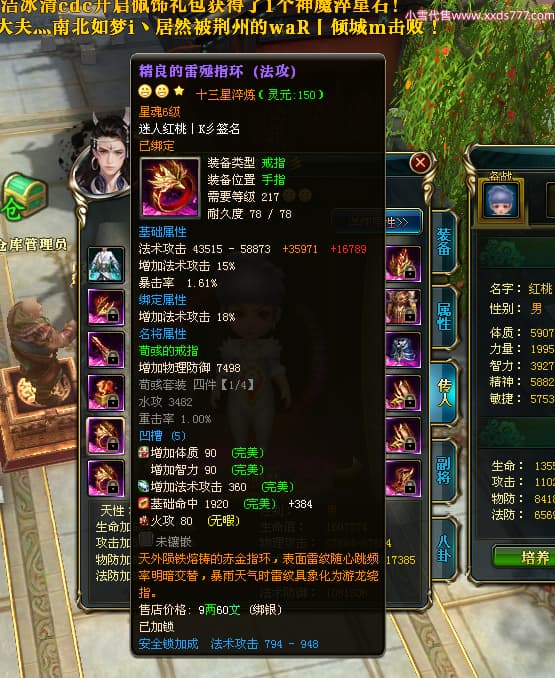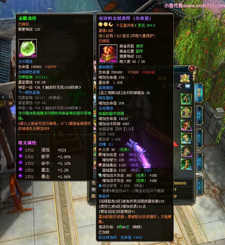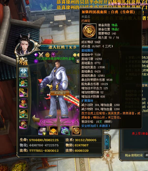 编号T25151 迷人红桃丨K彡 龙腾问鼎 燕州 本国排名85名 10375W战力 人物史诗紫12X(5件15X1件混沌) 传人精良紫12X 副将精良紫12X 马精良紫10X 精良紫14披风 人物星魂14级 传人星魂6级 副将星魂6级 马星魂8级 人物铭刻5件15级2件14级其余12级 点亮3件16星3件14星其余12星 马铭刻12级 点亮12星 人物绿龙印 马黄龙印 五六等单双属性神圣完美无暇石头 蓝黄孔