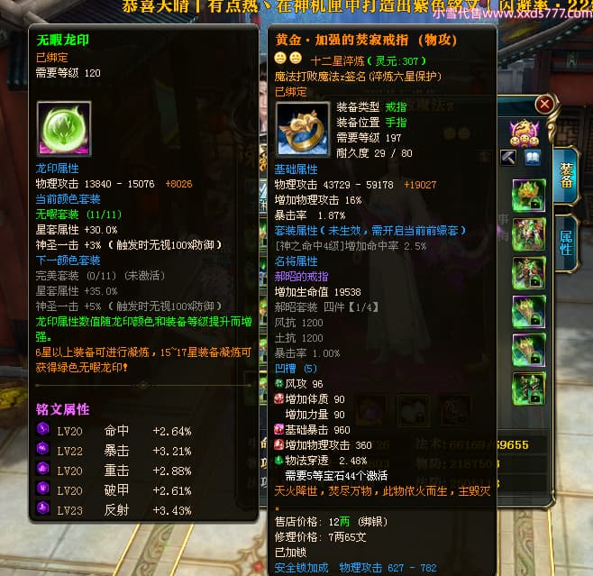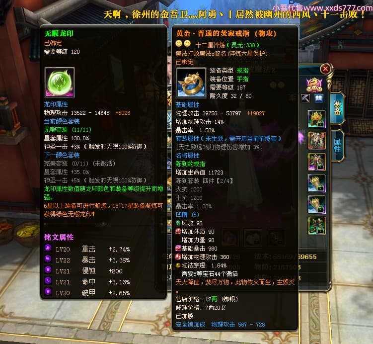 编号L25154 魔法打败魔法z 龙战王者 扬州 本国排名34名 4174W战力 人物黄金史诗紫12X(4件15X2件混沌) 马史诗紫10X 人物绿龙印 马黄龙印 六等单双属性石头