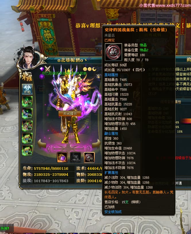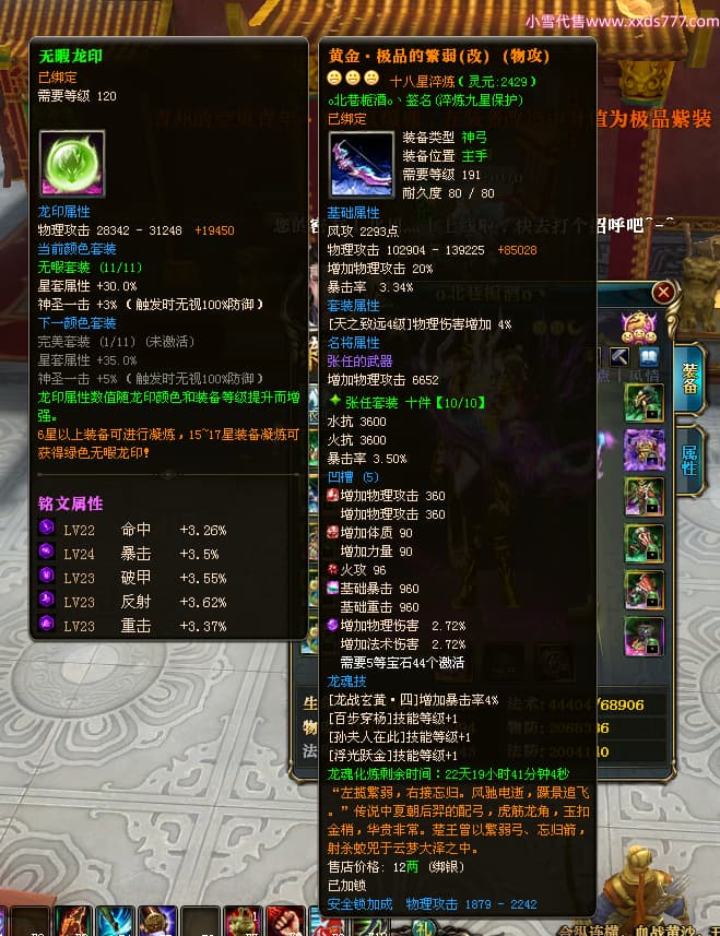 编号Q25156 o北巷栀酒o丶 群龙纵横 徐州 世界排名63名 5670W战力 人物黄金极品橙15X(2件18X6件混沌) 马黄金普通橙12X 人物绿龙印(1件紫龙印) 马黄龙印 六等单双属性石头 已开完永久15星套 可以转移百分百安全