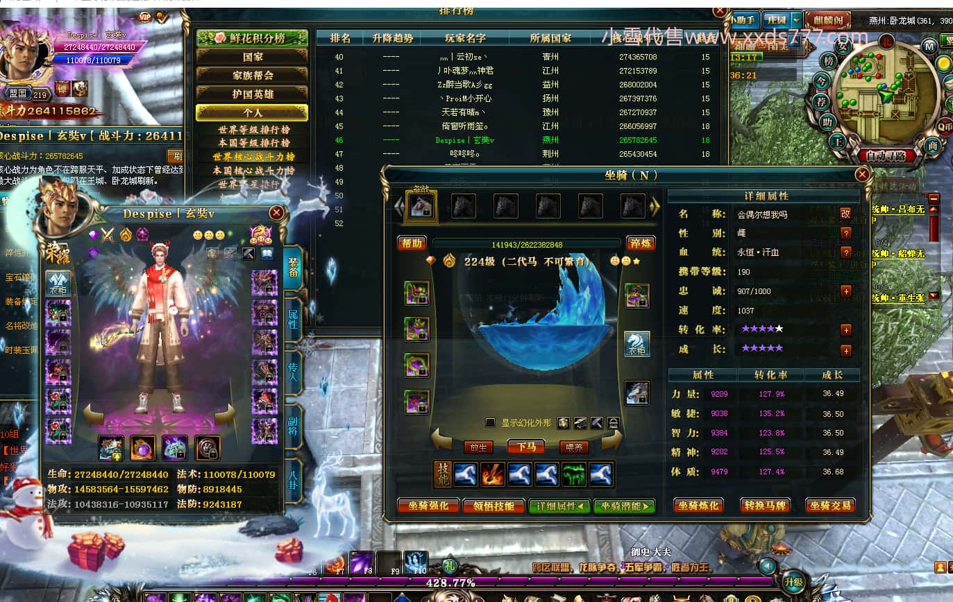 编号Q19498 书离i 群龙纵横 江州 本国排名8名 2313W战力 人物黄金普通橙12X(5件15X4件混沌) 马史诗紫9X 人物黄龙印(4件绿龙印) 马黄龙印 六等单双属性石头 可以转移百分百安全