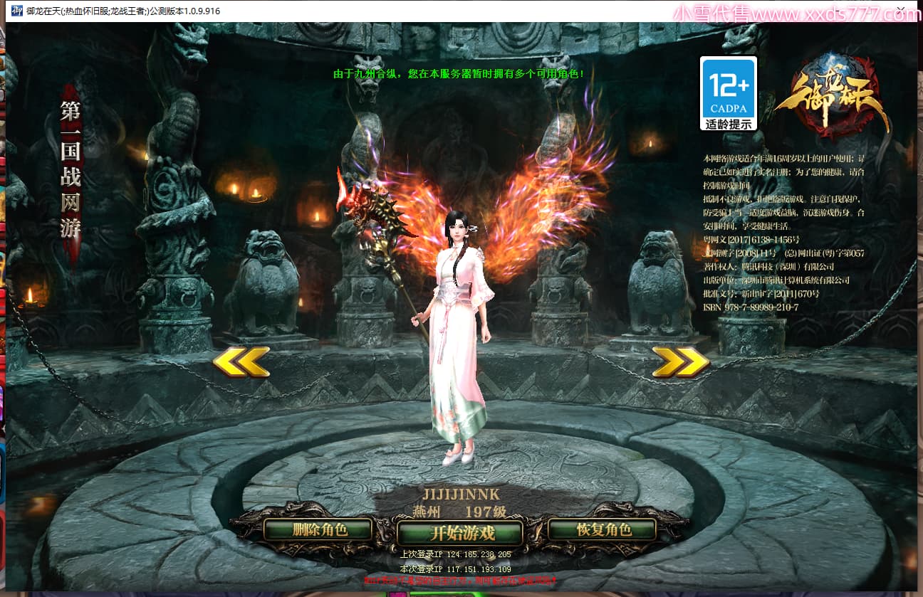 编号L22153 开大典 龙战王者 燕州 195级 人物12X点星号 号内Q币1063个 人物高淬103个 坐骑中淬120个