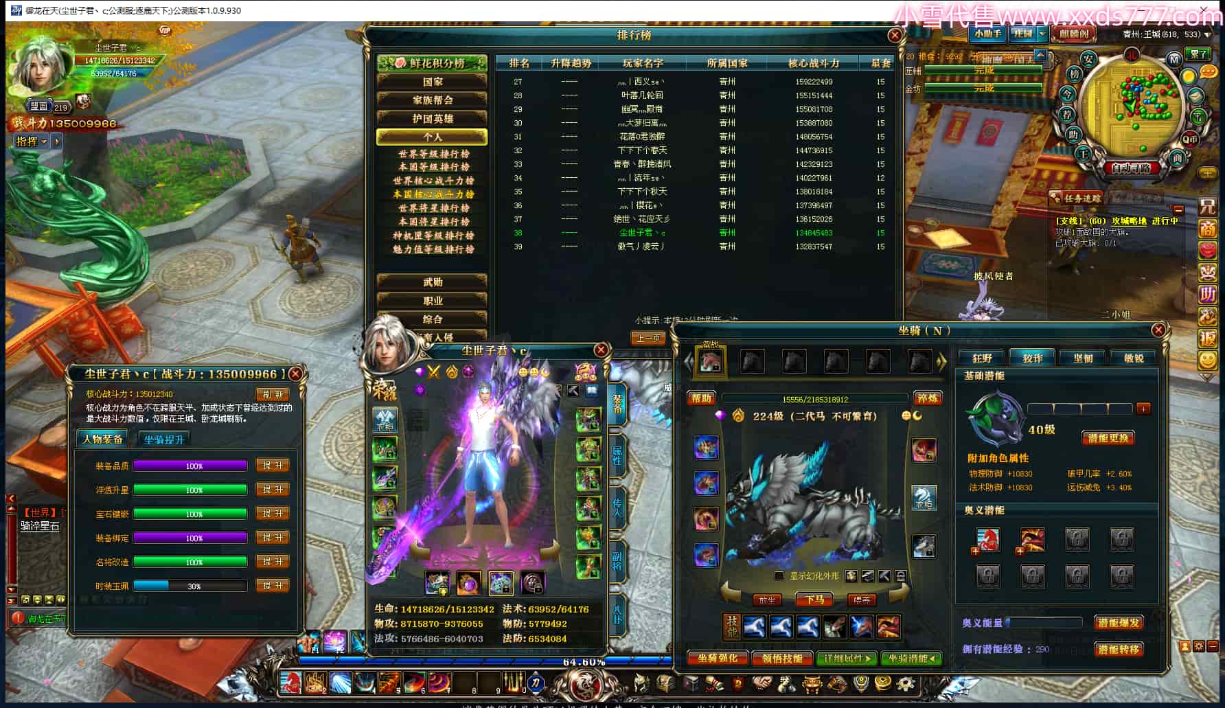 编号W24917 灬狂歌痛饮灬 龙舞九州 扬州 6323W战力 人物精良紫12X(1件18X) 传人精良紫12X 副将精良紫12X 马精良紫9X 马星魂3级 人物铭刻12级 点亮2件14星其余12星 马铭刻9级 点亮10星 人物蓝龙印(3件黄龙印1件紫龙印) 马白龙印 五等单双属性神圣完美无暇石头 蓝白孔 可以转移百分百安全