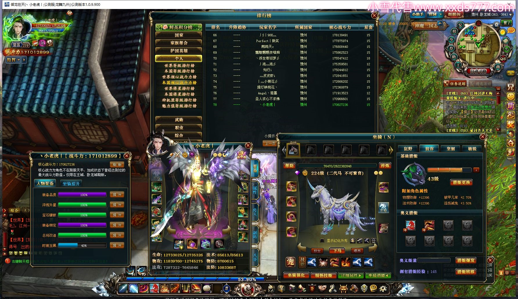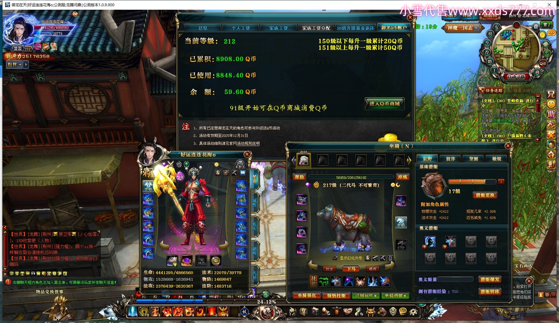 编号T23074 好运连连花海o 龙腾问鼎 扬州 212级 铭刻12级 点亮12星 副将12X 马9X 号内Q币59个 人物高淬8个 坐骑中淬152个 坐骑高淬5个