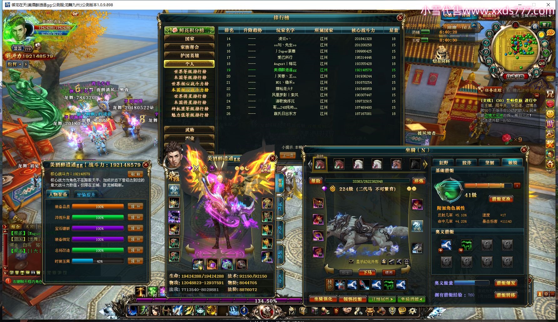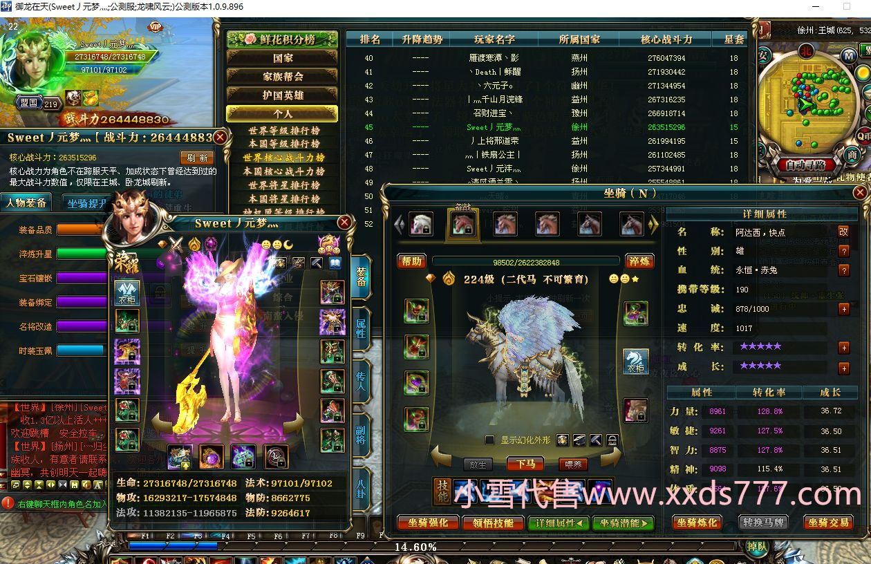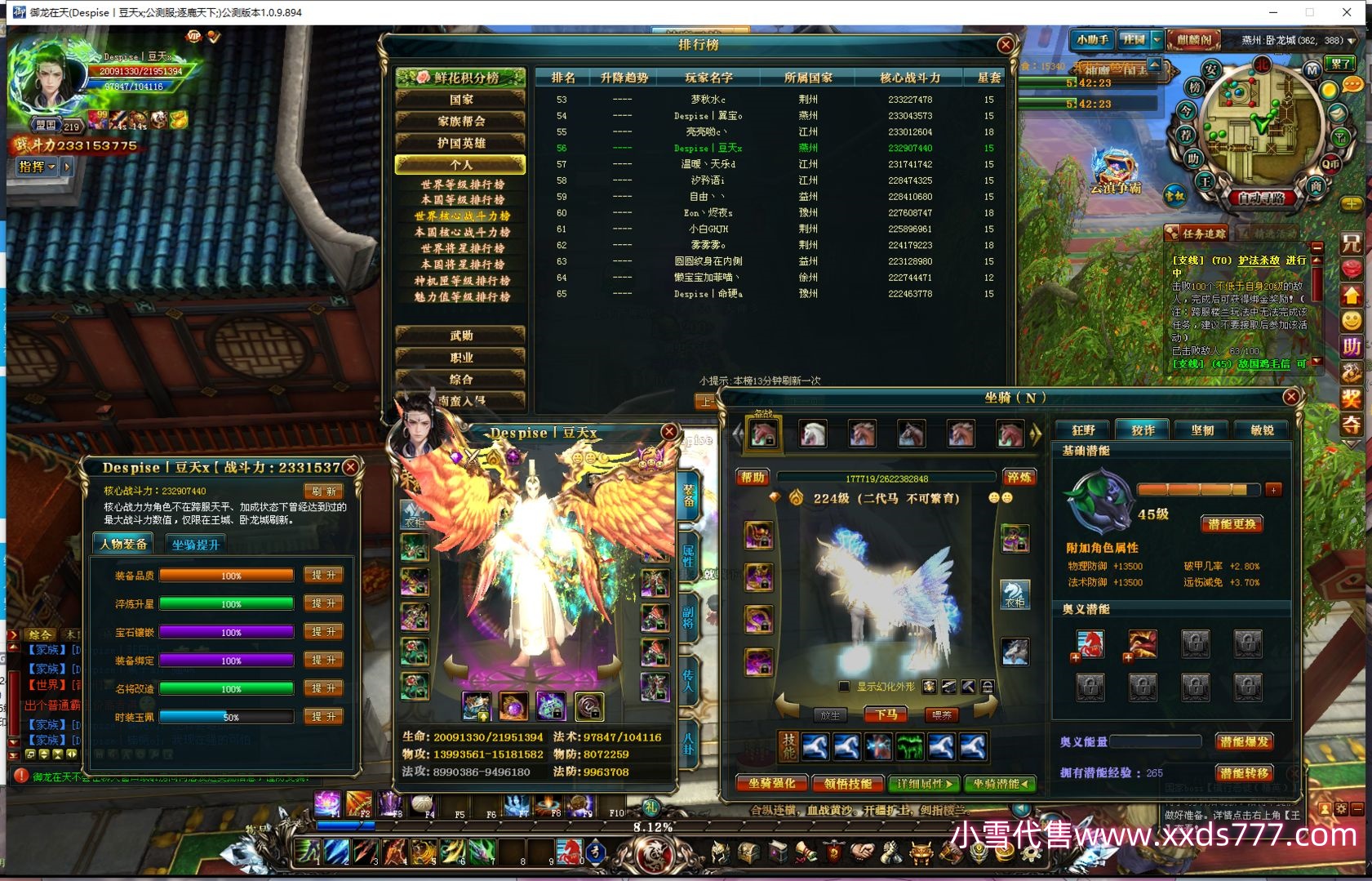 编号Q22498 大爱仙尊灬 潜龙九霄 豫州 本国排名10名 150级 449W战力 人物普通紫12X(7件黄金) 马加强紫9X 六等单双属性石头