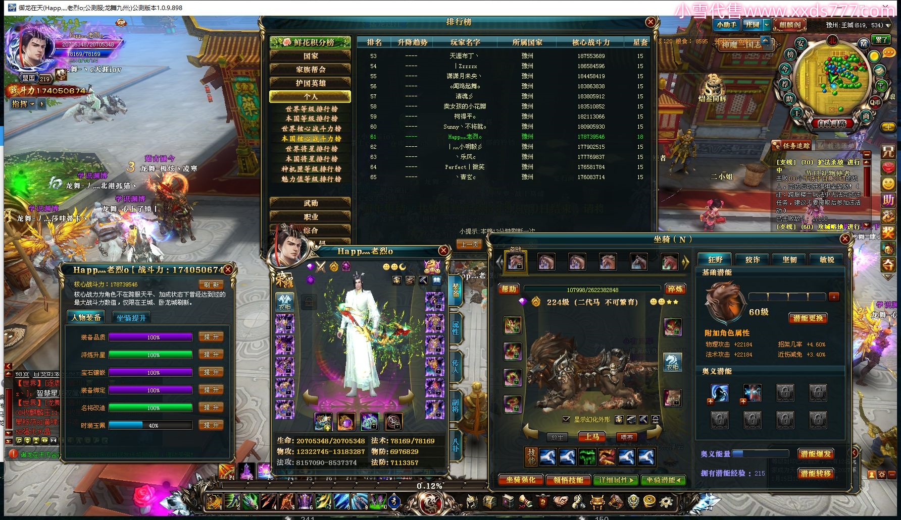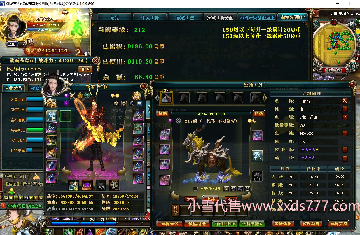 编号T22713 1000倍经验丹 龙腾问鼎 扬州 等级212级 点星号 人物12X 传人12X 马9X 人物铭刻12级 点亮12星 马铭刻9级 点亮10星 号内Q币171个 人物高翠64个 马中萃100个 高翠30个