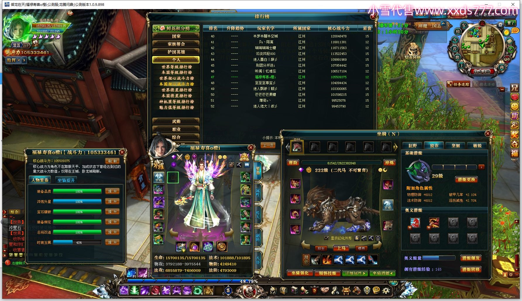 编号X22318 黑手3号 龙啸风云 益州 155级 人物12X点星号 铭刻12级 点亮12星 马9X 号内Q币247个 人物高淬318个 坐骑中淬415个