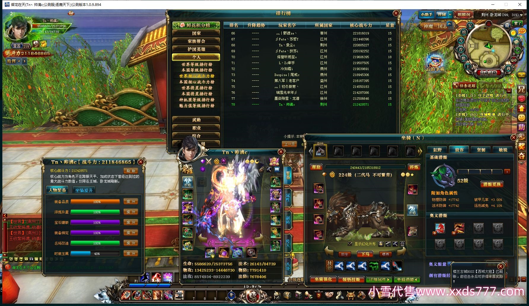 编号T22714 欲霸苍穹ii 龙腾问鼎 扬州 等级212级 人物12X 传人12X 马9X 人物铭刻12级 点亮12星 马铭刻9级 点亮10星 号内Q币66个 人物高翠61个 马中萃125个 高翠21个