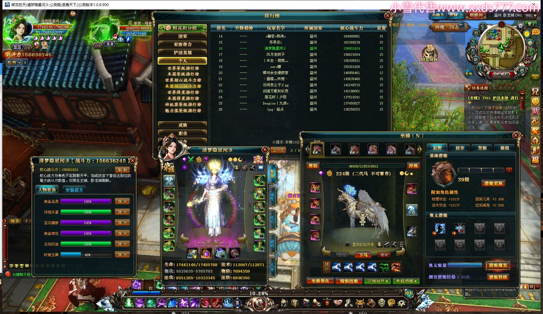 编号Z22692 咸鱼精y 逐鹿天下 徐州 本国排名第19名 17076W战力 人物黄金加强橙15X(4件混沌) 传人加强橙13X(9件15X) 副将精良紫12X 马史诗紫11X 极品紫15披风 人物星魂16级 传人10级 副将6级 马星魂11级 人物铭刻15级 点亮(项链/主手/副手/戒指/头盔/盔甲/腰带16星)护腕/鞋子14星 马1件13级4件12级 点亮12星 五六等单双属性神圣完美无瑕石头 绿黄孔 人物2件紫+9件绿龙印 马黄龙印 已开完永久15星套