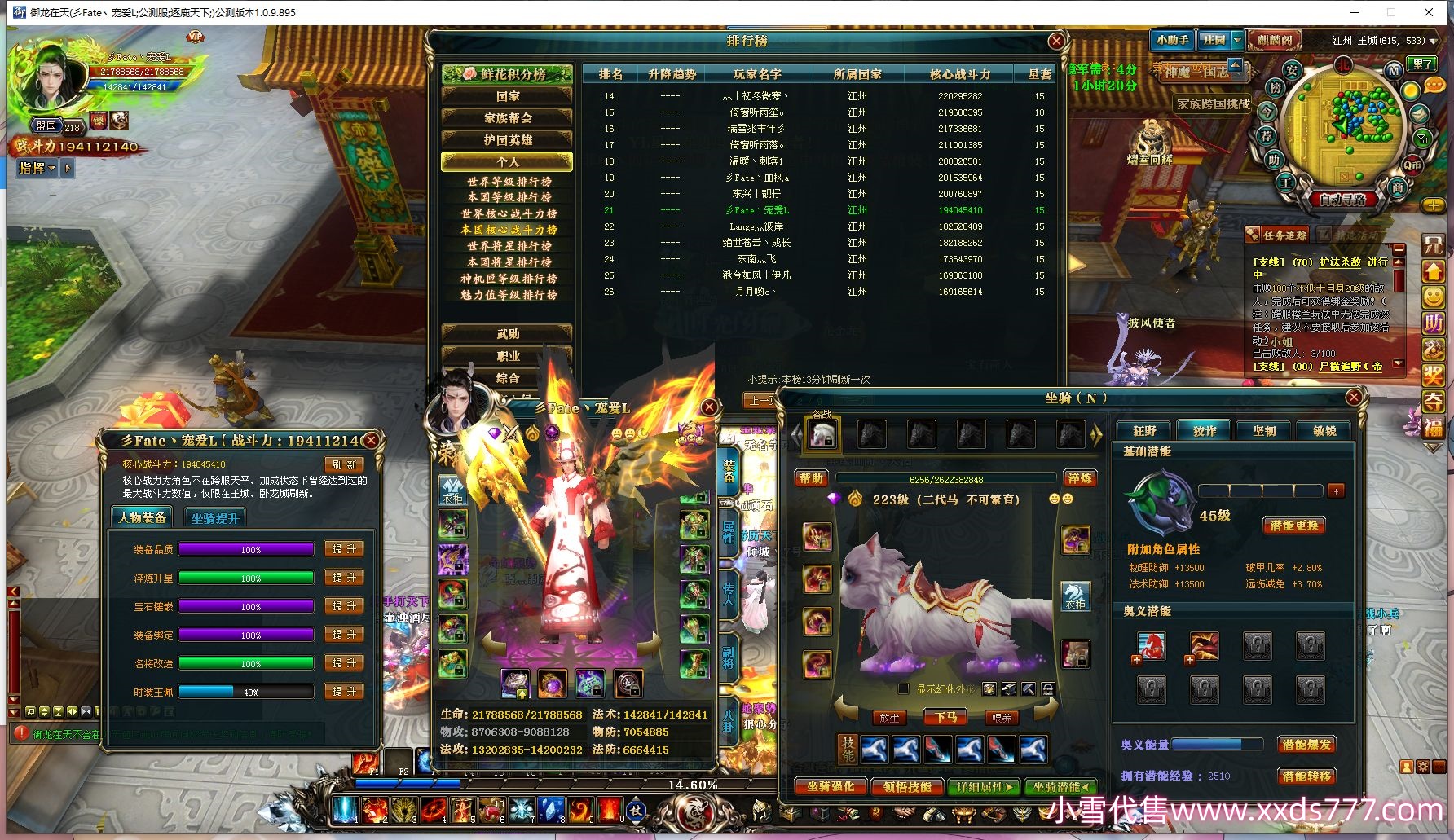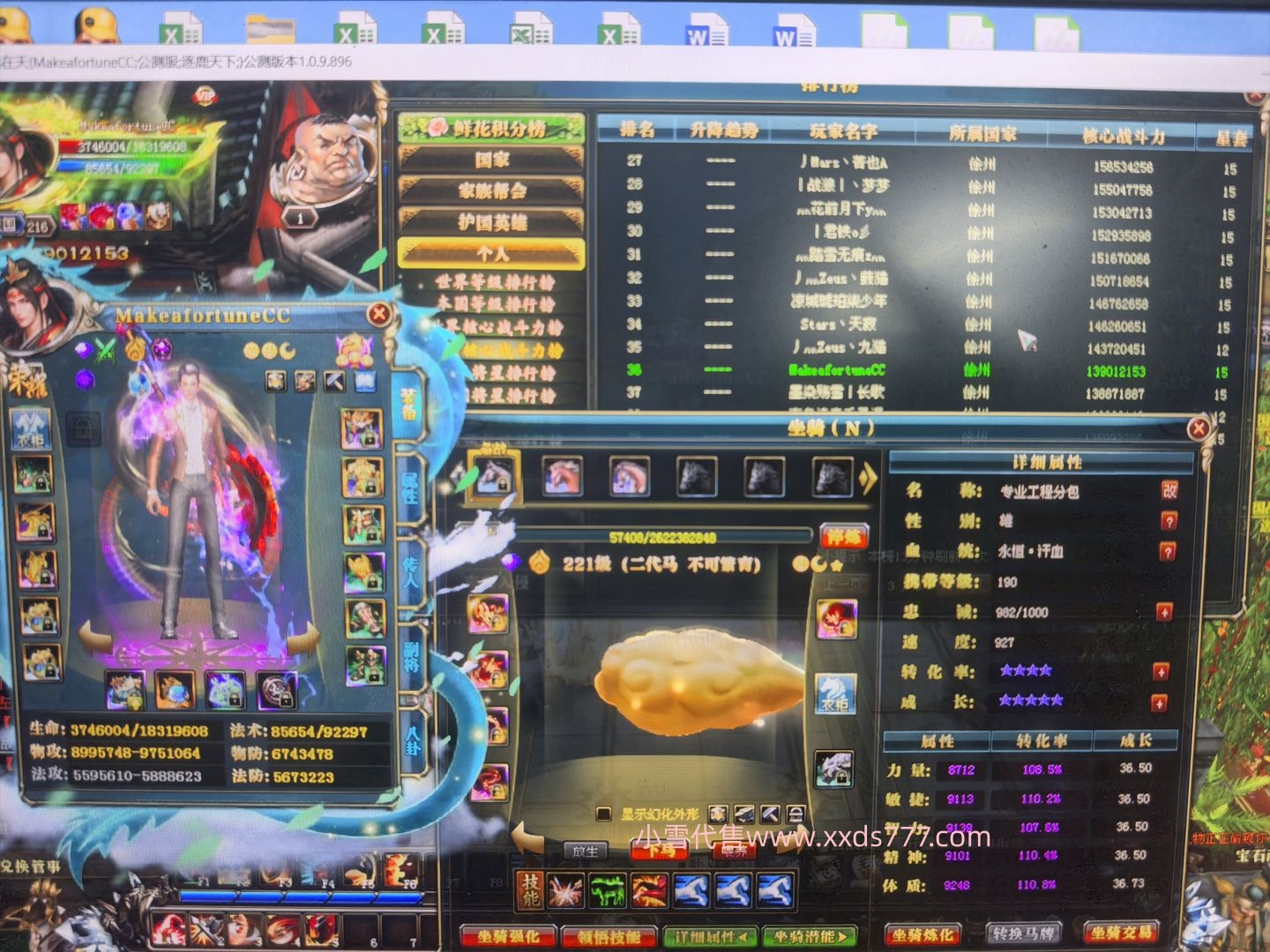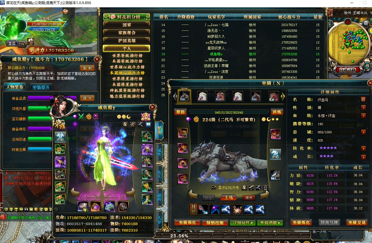 编号Z22692 咸鱼精y 逐鹿天下 徐州 本国排名第19名 17076W战力 人物黄金加强橙15X(4件混沌) 传人加强橙13X(9件15X) 副将精良紫12X 马史诗紫11X 极品紫15披风 人物星魂16级 传人10级 副将6级 马星魂11级 人物铭刻15级 点亮(项链/主手/副手/戒指/头盔/盔甲/腰带16星)护腕/鞋子14星 马1件13级4件12级 点亮12星 五六等单双属性神圣完美无瑕石头 绿黄孔 人物2件紫+9件绿龙印 马黄龙印 已开完永久15星套
