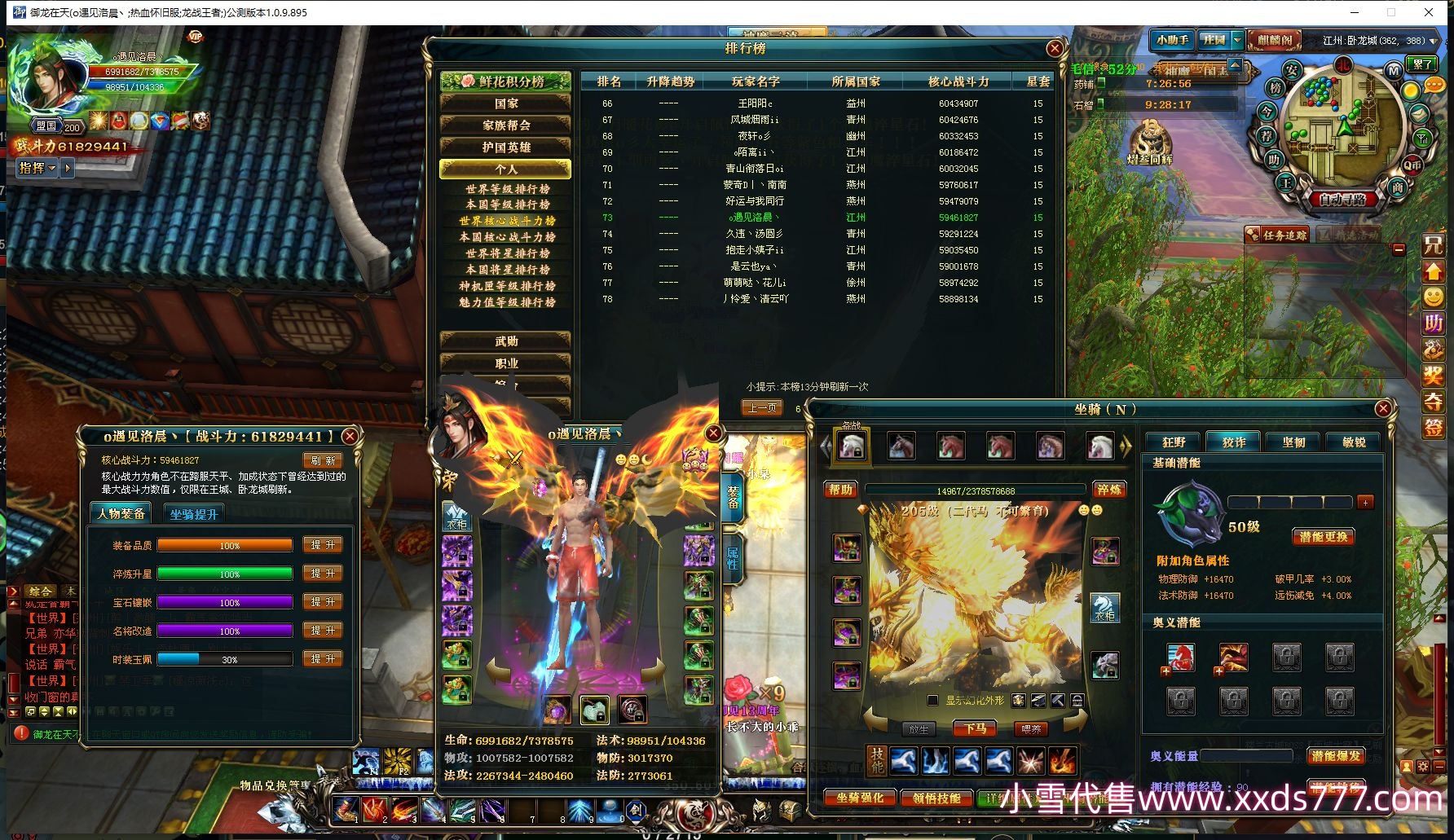 编号Q22830 传说中的相依 群龙纵横 徐州 本国排名44名 3925W战力 人物加强紫15X(4件混沌) 马史诗紫10X 人物绿龙印(6件紫龙印) 马黄龙印 六等单双属性石头 已开启永久15星套 紫头号