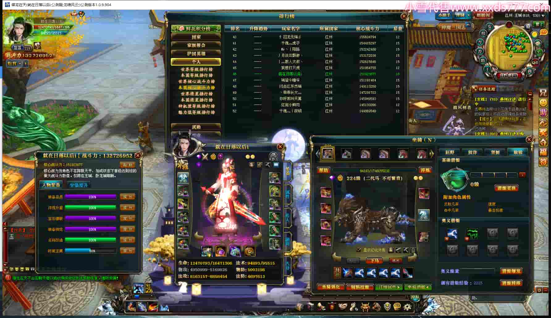 编号T23425 童彡 龙腾问鼎 幽州 210级 人物12X点星号 铭刻12级 点亮12星 传人12X 副将12X 马9X 人物高淬50个 坐骑中淬60个 坐骑高淬15个