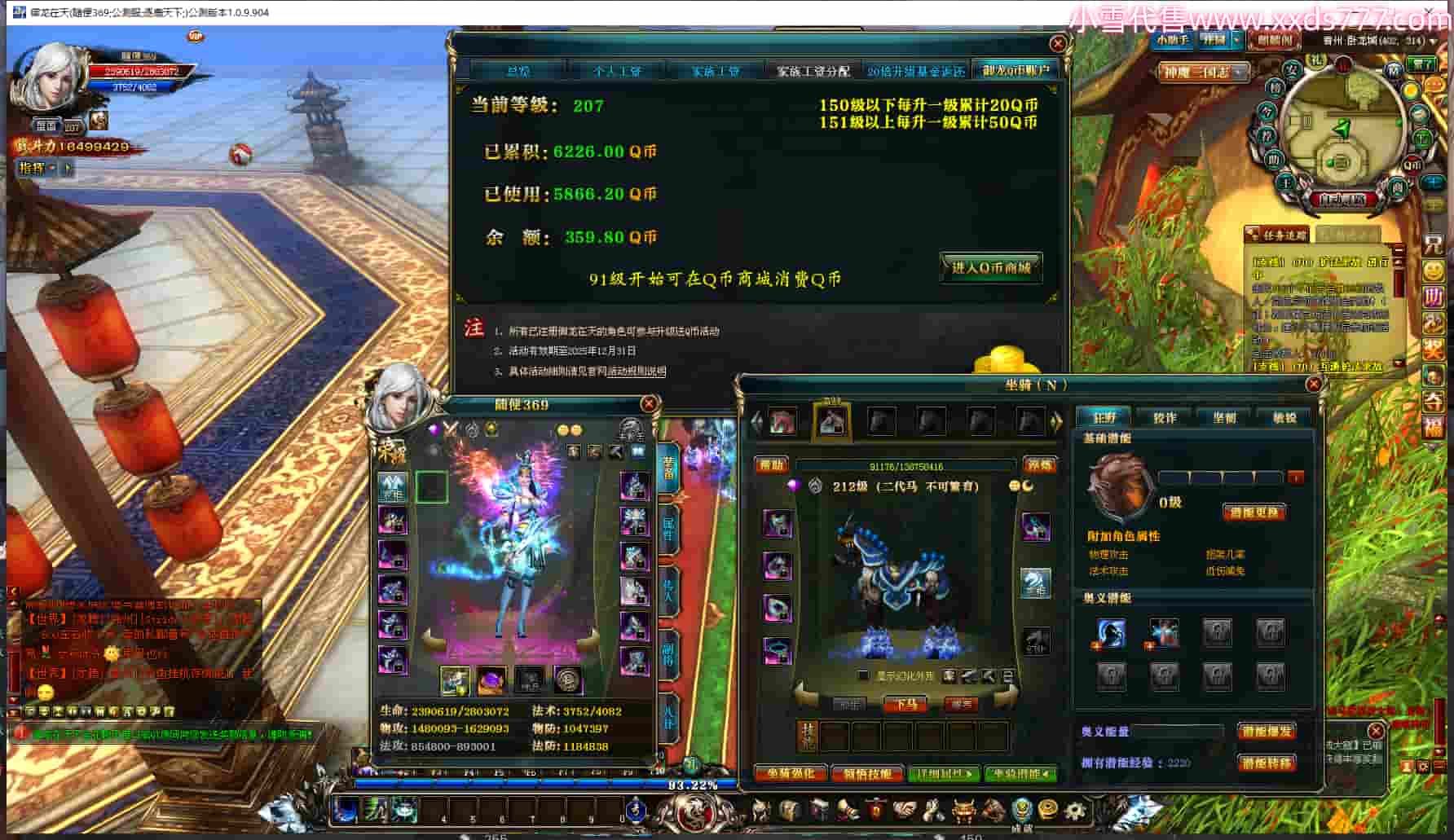 编号Z23419 随便369 逐鹿天下 青州 207级 人物12X点星号 马9X 号内Q币359个 人物高淬1273个 坐骑中淬95个