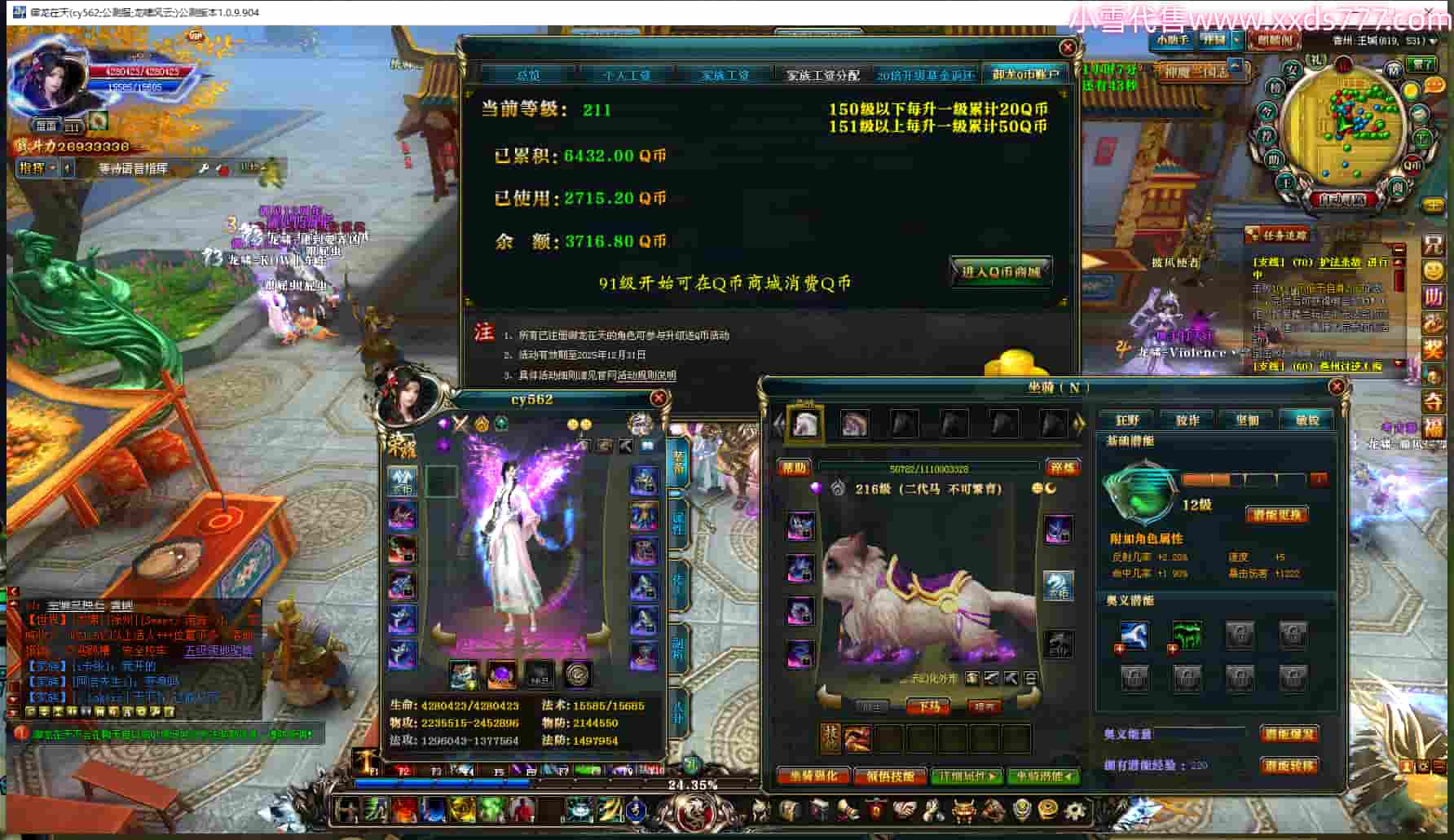 编号X23422 cy562 龙啸风云 青州 211级 2693W战力 人物12X点星号 马9X 号内Q币3716个 人物高淬1131个 坐骑中淬334个