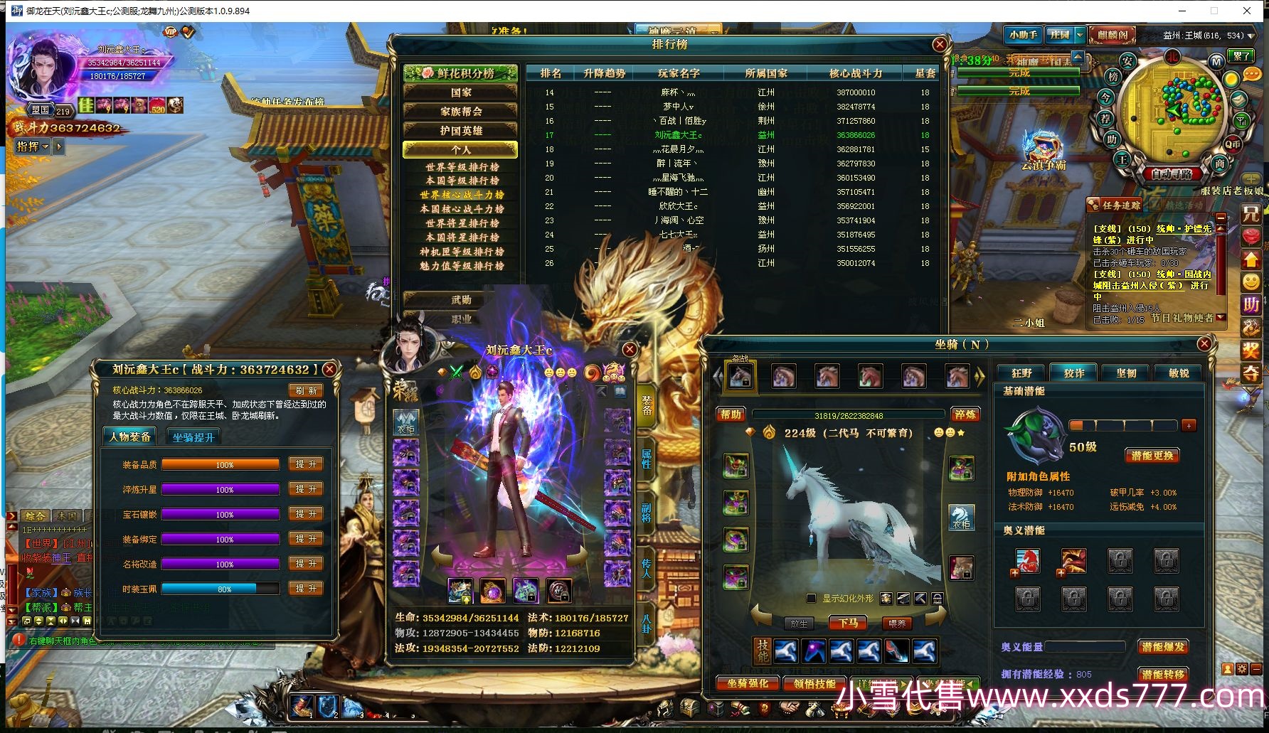 编号W15623 1亚枫1丶 龙舞九州 扬州 167级 人物12X点星号 马6X 人物高淬40个 坐骑中淬2个