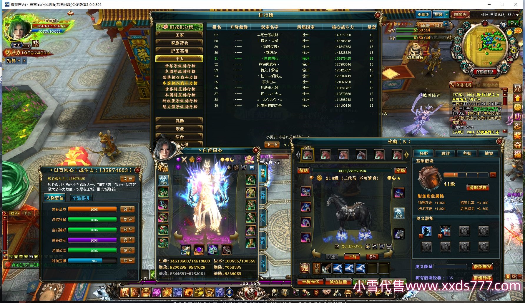 编号L21513 丨一夜无情i 龙战王者 徐州 本国排名9名 3637W战力 人物黄金史诗紫12X(5件15X4件混沌) 马史诗紫9X 人物绿龙印 马黄龙印 六等单双属性石头