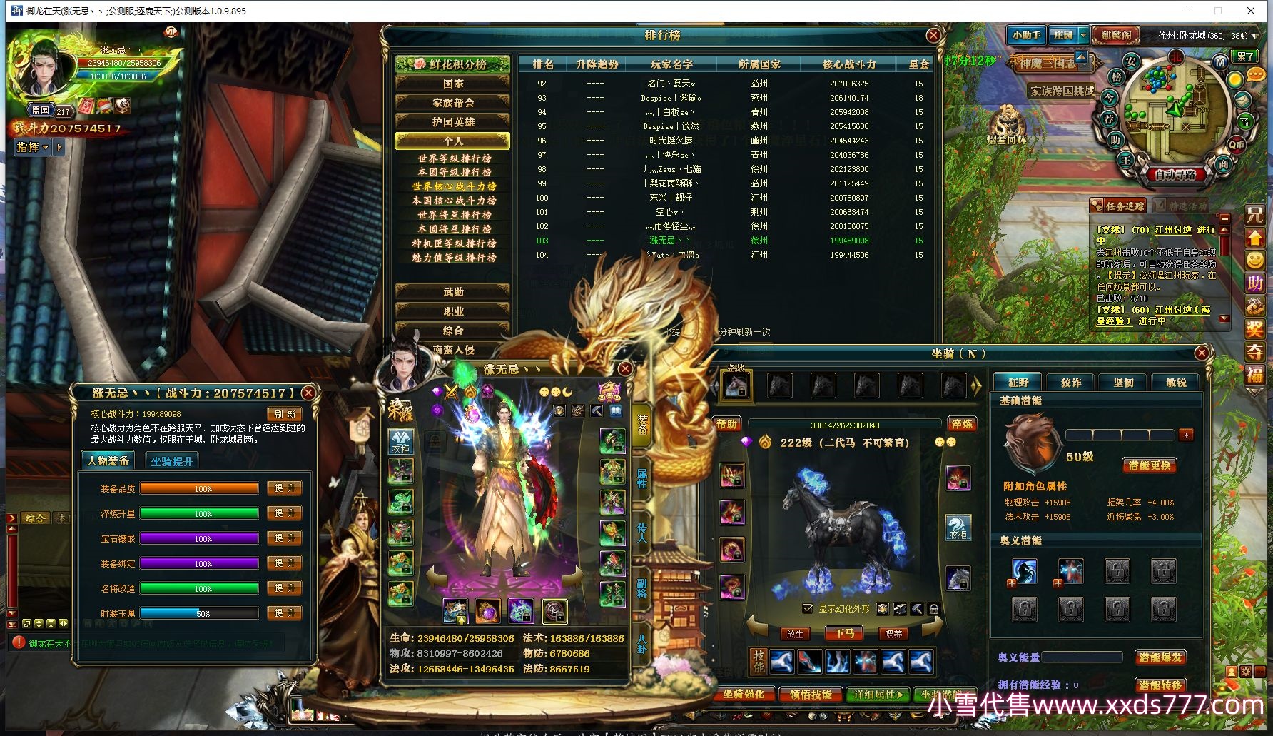 编号T22423 LOVE灬鑫怡一号 龙腾问鼎 燕州 190级 人物12X点星号 马7X 人物高淬127个 坐骑中淬2个
