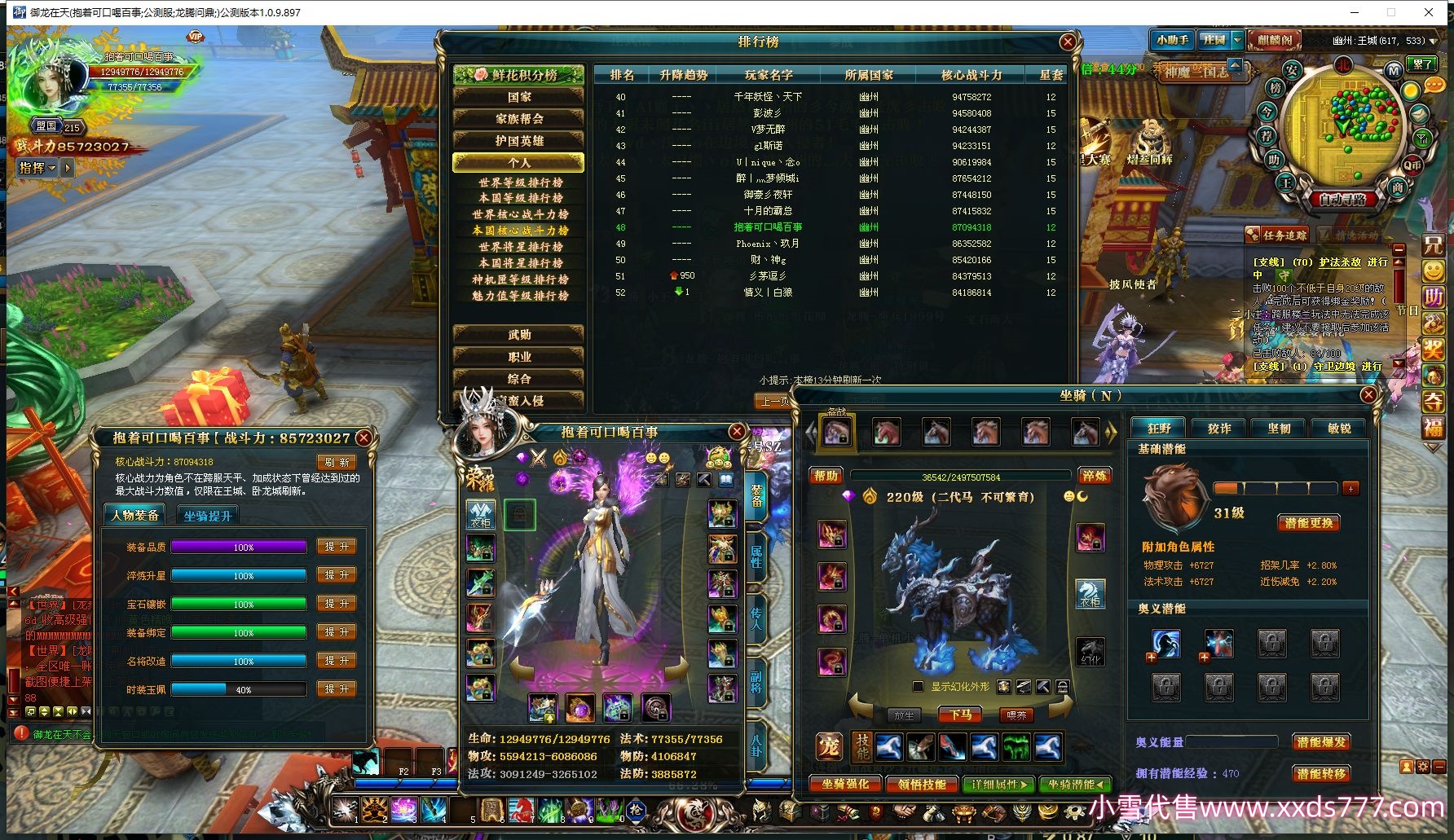 编号T21948 朗朗乾坤之仙 龙腾问鼎 益州 205级 人物12X点星号 铭刻12级 点亮12星 号内Q币2461个 人物高淬516个 坐骑中淬131个