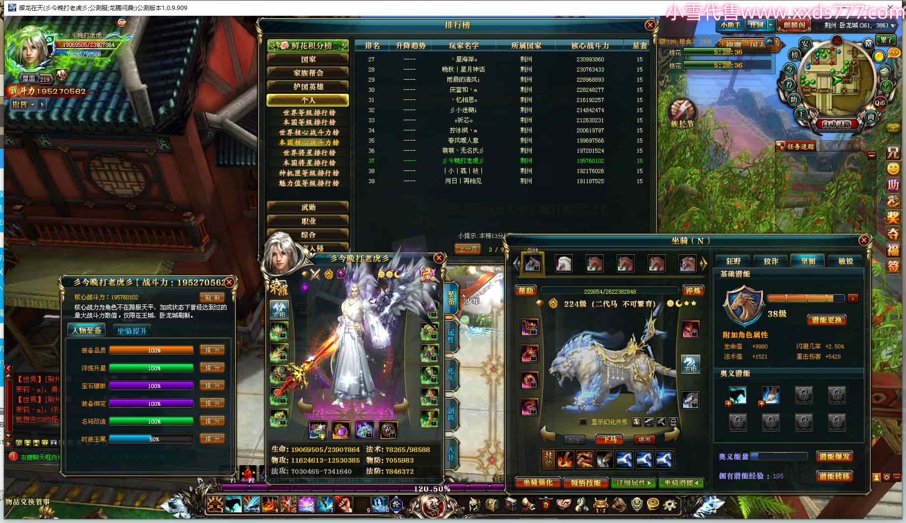 编号W23220 调皮大王c 龙舞九州 益州 世界排名38名 30414W战力 人物混沌极品橙15X(2件18X) 传人史诗紫15X 副将史诗紫15X 马黄金加强橙14X(双潜能54级54级) 史诗紫18披风 人物星魂16级 传人星魂16级 副将星魂6级 马星魂16级 人物铭刻2件18级1件17级2件16级其余15级 点亮2件18星其余16星 马铭刻14级 点亮14星 人物紫龙印 马黄龙印(4件绿龙印)六等单双属性神圣无瑕完美石头 绿紫孔 已开完永久18星套 可以转移百分百安全