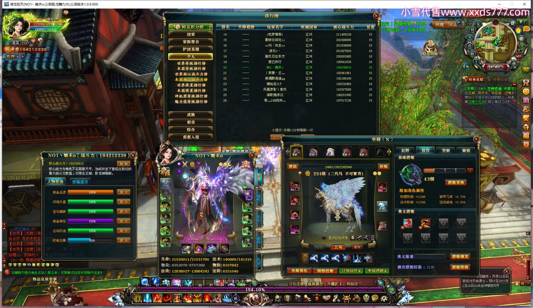 编号W20386 冠希g丶CC 龙舞九州 江州 191级 人物12X点星号 号内Q币70个 人物高淬146个 坐骑中淬12个