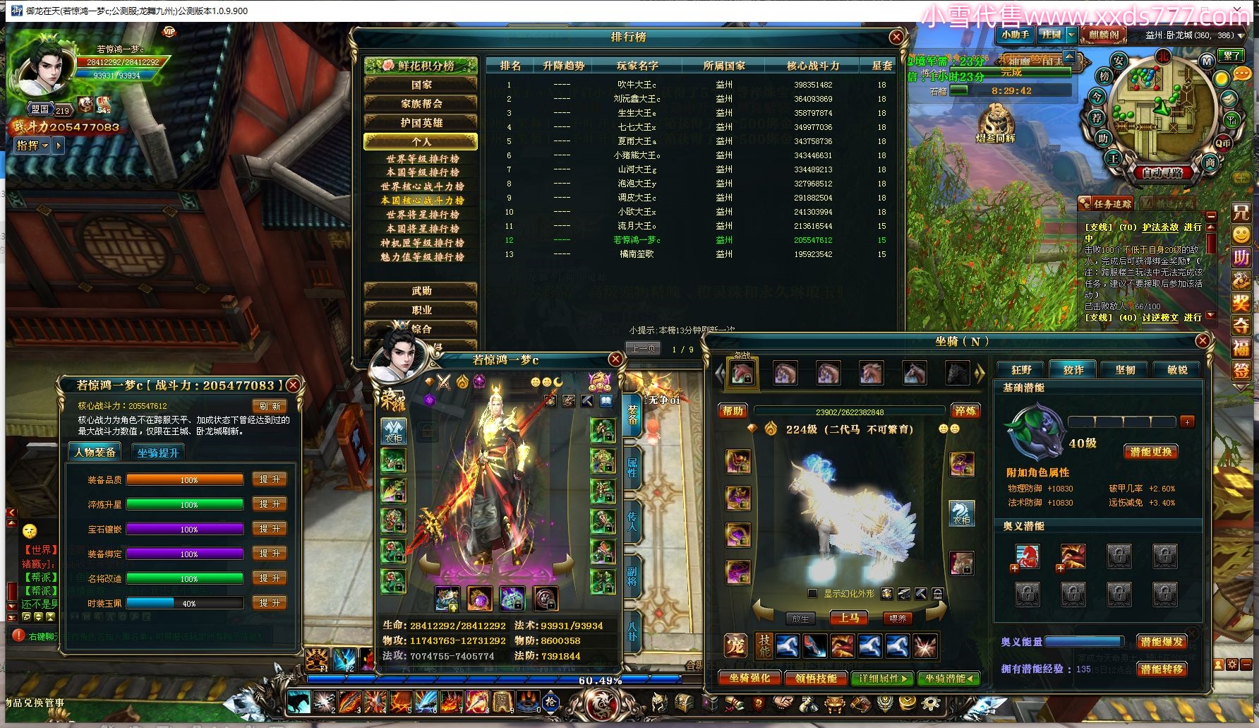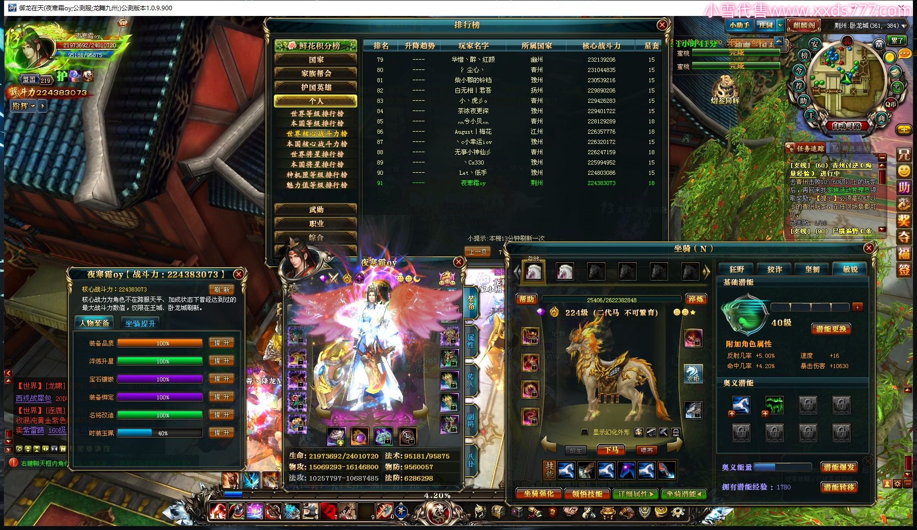 编号W20386 冠希g丶CC 龙舞九州 江州 191级 人物12X点星号 号内Q币70个 人物高淬146个 坐骑中淬12个