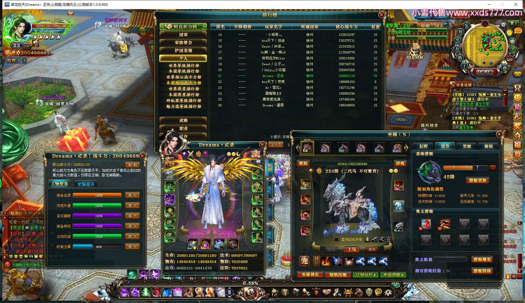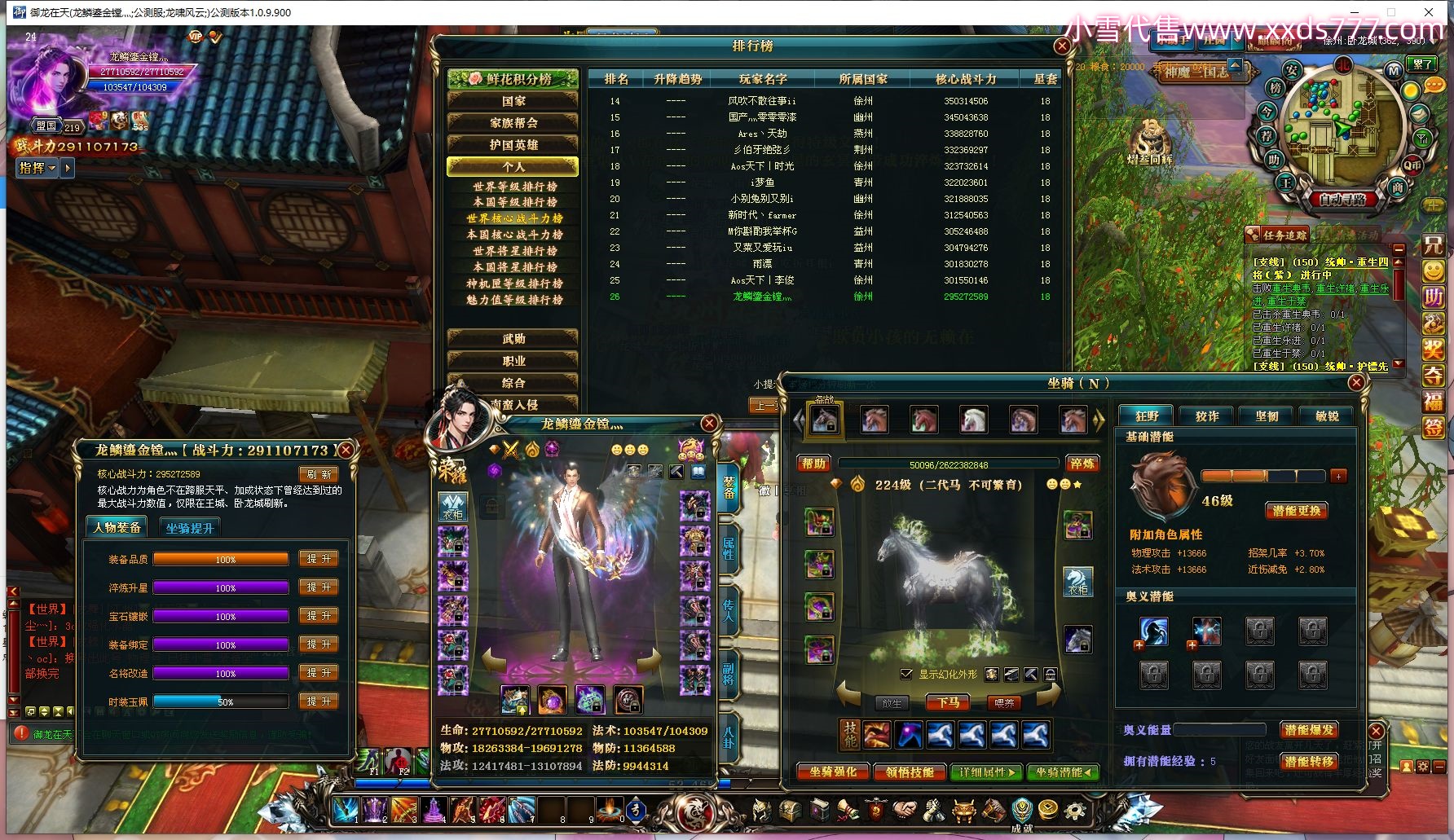 编号X22604 翱翔风云丶 龙啸风云 荆州 193级 人物12X点星号 马9X 人物高淬225个 坐骑中淬108个 坐骑高淬1个