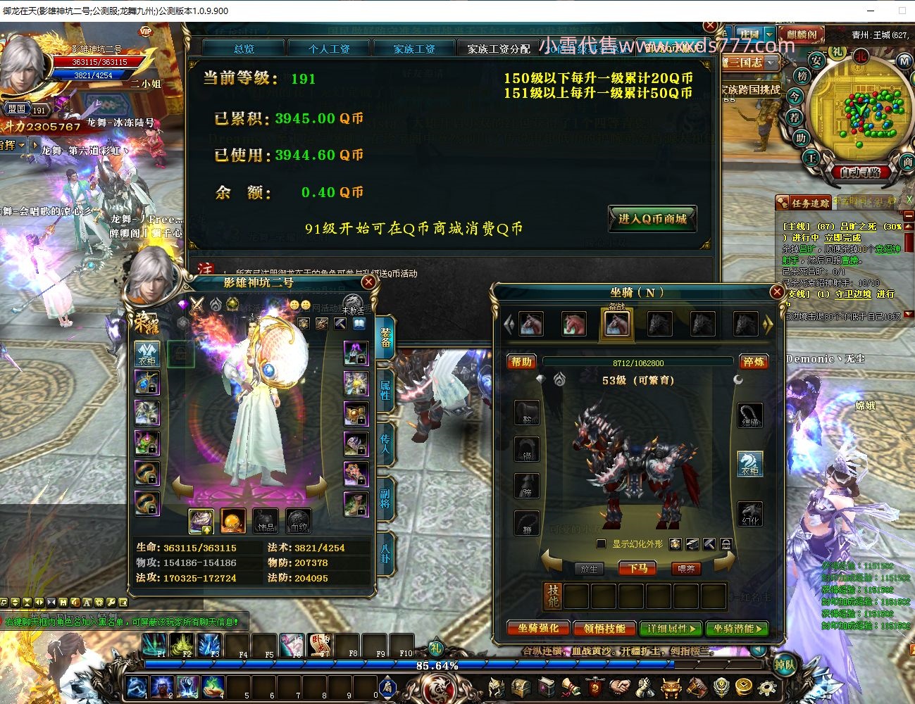 编号W20386 冠希g丶CC 龙舞九州 江州 191级 人物12X点星号 号内Q币70个 人物高淬146个 坐骑中淬12个