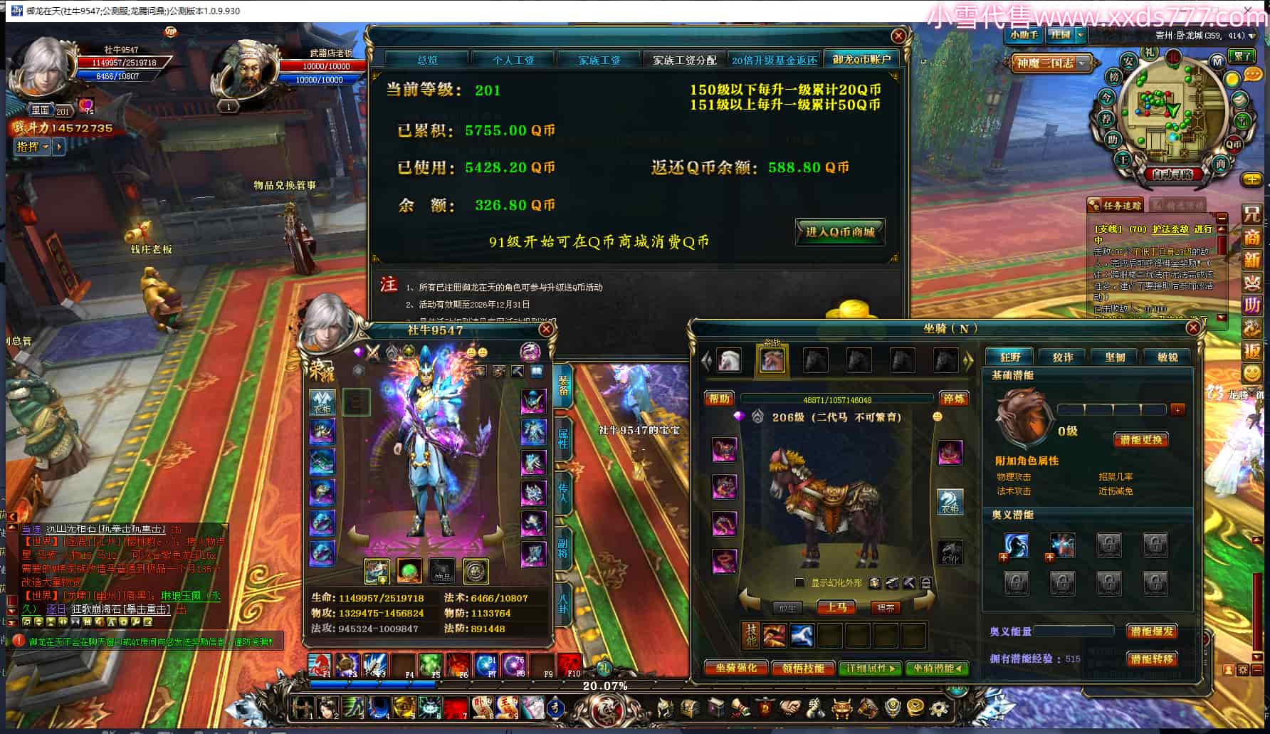 编号T25096 社牛9547 龙腾问鼎 青州 201级 人物12X点星号 马6X 号内Q币326个 人物高淬47个 坐骑中淬19个