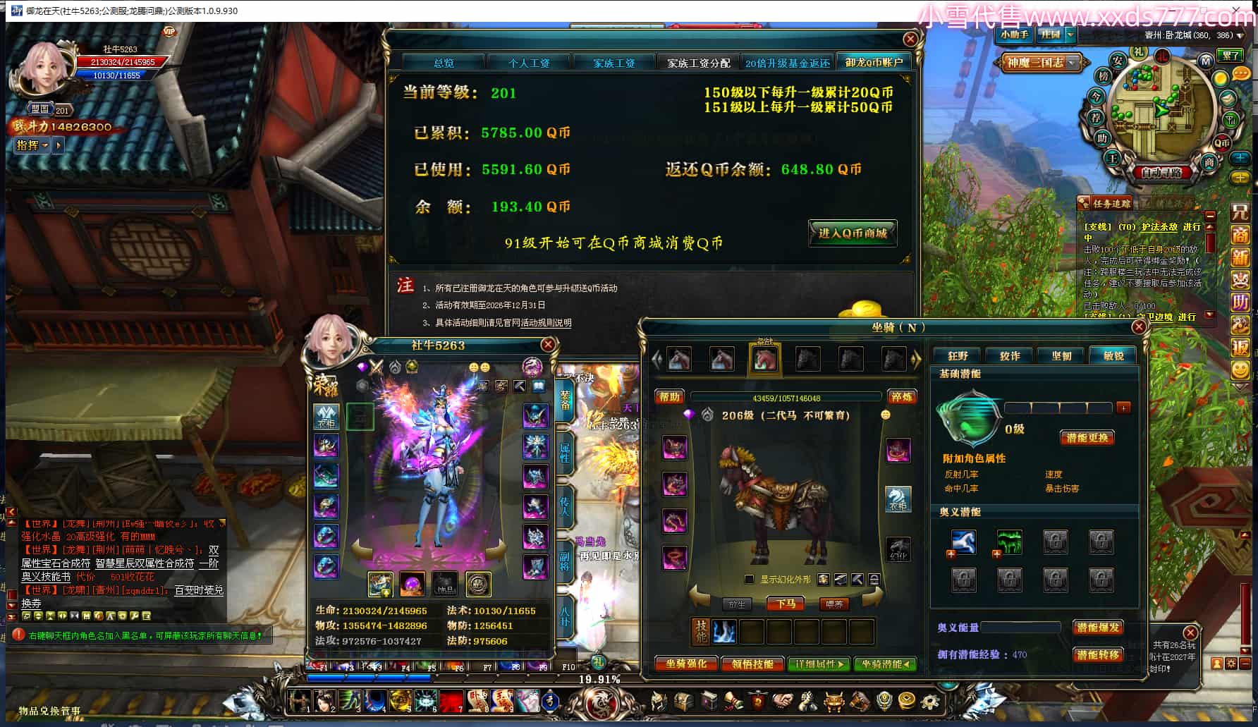 编号W23793 初见丶筱筱 龙舞九州 江州 200级 人物12X点星号 号内Q币3147个 人物高淬358个 坐骑中淬29个
