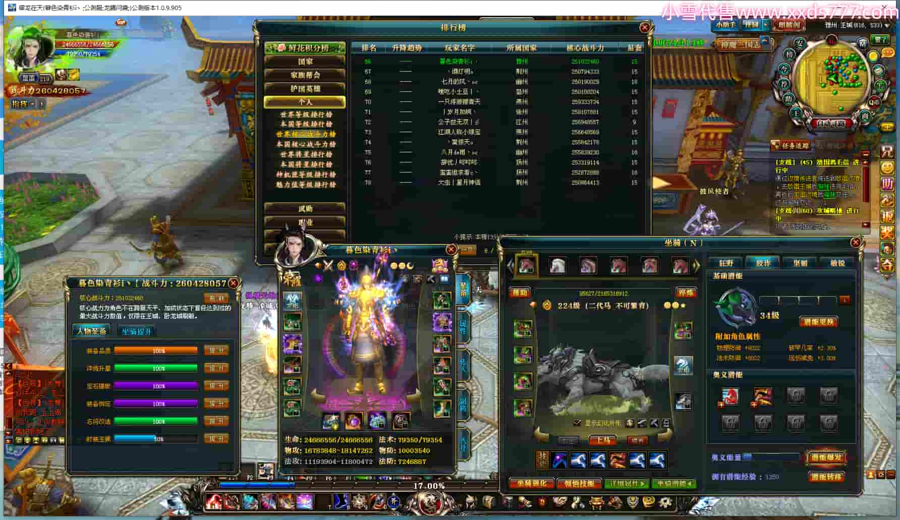编号T22770 穆羽宸z丶 龙腾问鼎 豫州 世界排名16名 40960W战力 人物混沌极品橙18X 传人黄金普通橙18X(5件混沌) 副将黄金加强橙15X(2件混沌) 马混沌精良橙14X(双潜能50级41级) 史诗紫17披风 人物星魂16级 传人星魂16级 副将星魂16级 马星魂16级 人物铭刻18级 点亮18星 马铭刻15级 点亮14星 人紫龙印 马绿龙印 六等单双属性神圣石头 绿紫孔 已开7次永久15星套 可以转移百分百安全