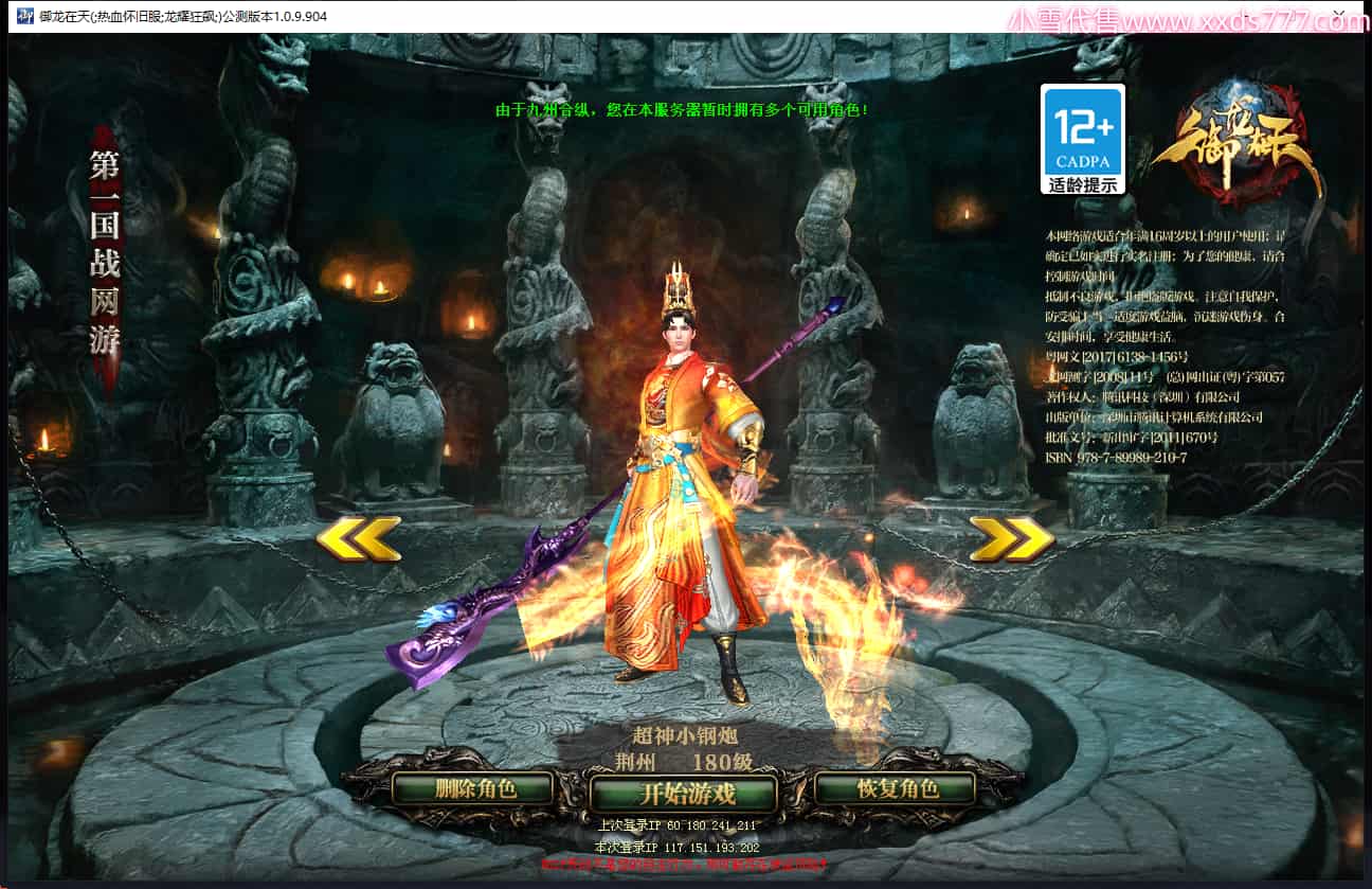 区服类型:怀旧区 九州龙虎