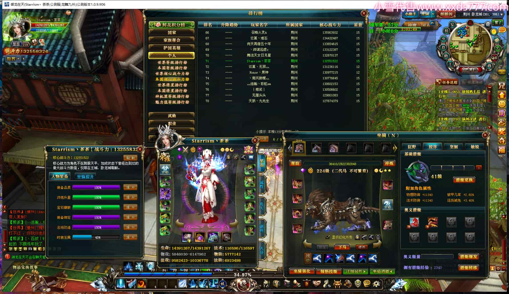 编号T22819 傲无霜i 龙腾问鼎 荆州 世界排名4名 47366W战力 人物混沌极品橙18X 传人混沌极品橙18X 副将黄金极品橙18X(4件混沌) 马混沌极品橙14X(双潜能58级50级) 极品紫16披风 人物星魂16级 传人星魂16级 副将星魂14级 马星魂16级 人物铭刻18级 点亮18星 马铭刻15级 点亮14星 人物紫龙印 马绿龙印 六等单双属性神圣石头 紫孔 可以转移百分百安全