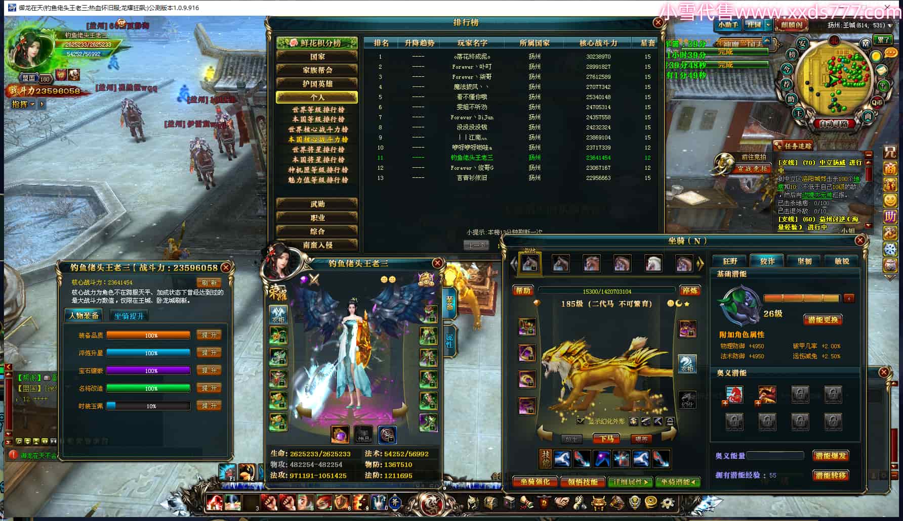 编号X24162 烈焰V惊鸿 龙啸风云 扬州 8927W战力 人物史诗紫14X(9件15X) 传人精良紫12X 副将精良紫12X 马史诗紫10X 精良紫14披风 人物星魂16级 传人星魂7级 副将星魂6级 马星魂7级 人物铭刻15级 人物点亮7件16星其余14星 马铭刻10级 点亮10星 人物绿龙印 马黄龙印 五等单双属性神圣完美优秀石头 可以转移百分百安全