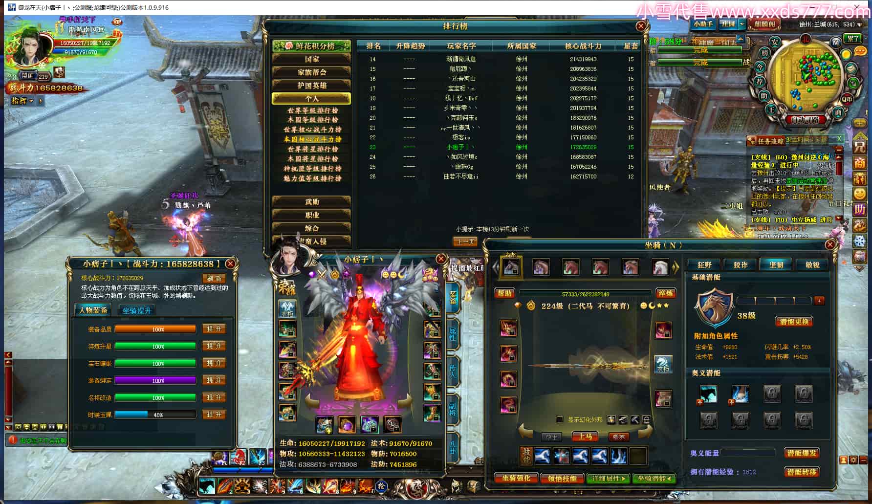 编号T24164 小痞子丨丶 龙腾问鼎 徐州 本国排名23名 16582W战力 人物黄金普通橙15X(2件17X5件16X5件混沌) 传人史诗紫15X 副将精良紫15X 马普通橙11X 精良紫15披风 人物星魂16级 传人星魂7级 副将星魂6级 马星魂10级 人物铭刻15级 人物点亮16星 马铭刻12级 点亮12星 人绿龙印 马黄龙印 六等单双属性神圣完美无瑕石头 黄蓝孔
