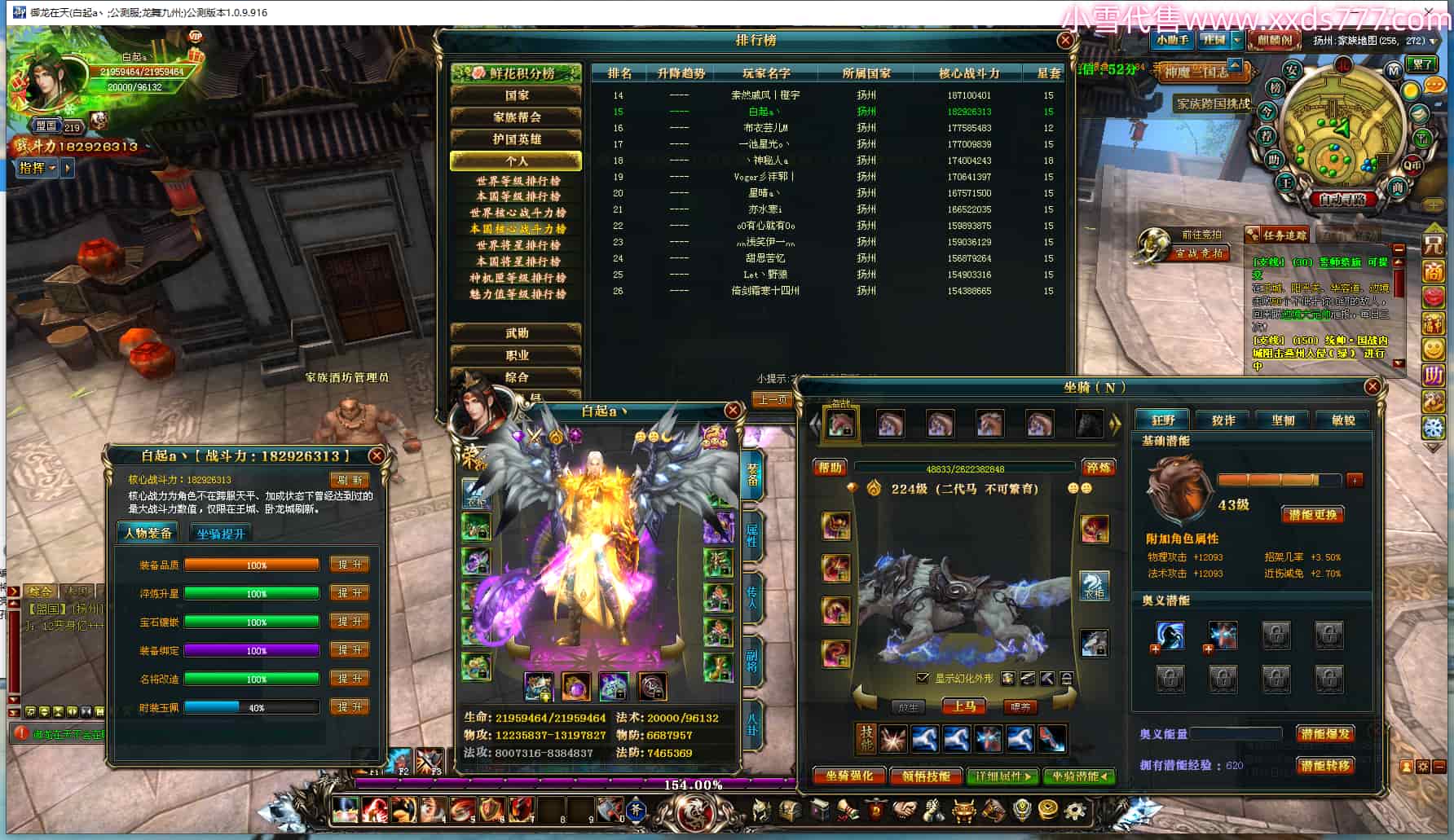 编号T24088 55124X 龙腾问鼎 扬州 190级 人物12X点星号 马9X 号内Q币1893个 人物高淬395个 坐骑中淬46个 坐骑高淬3个