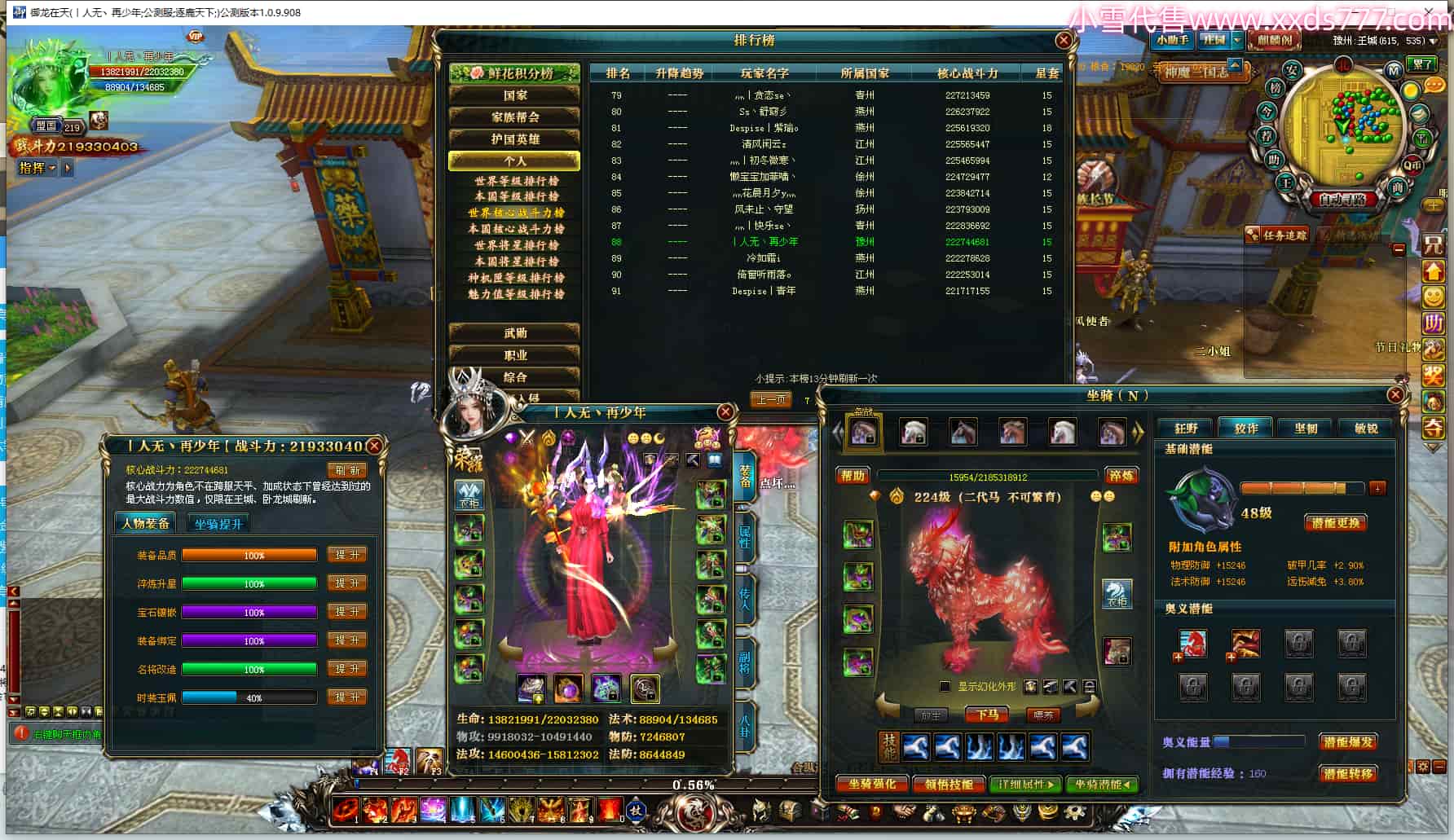 编号T21948 朗朗乾坤之仙 龙腾问鼎 益州 205级 人物12X点星号 铭刻12级 点亮12星 号内Q币2461个 人物高淬516个 坐骑中淬131个