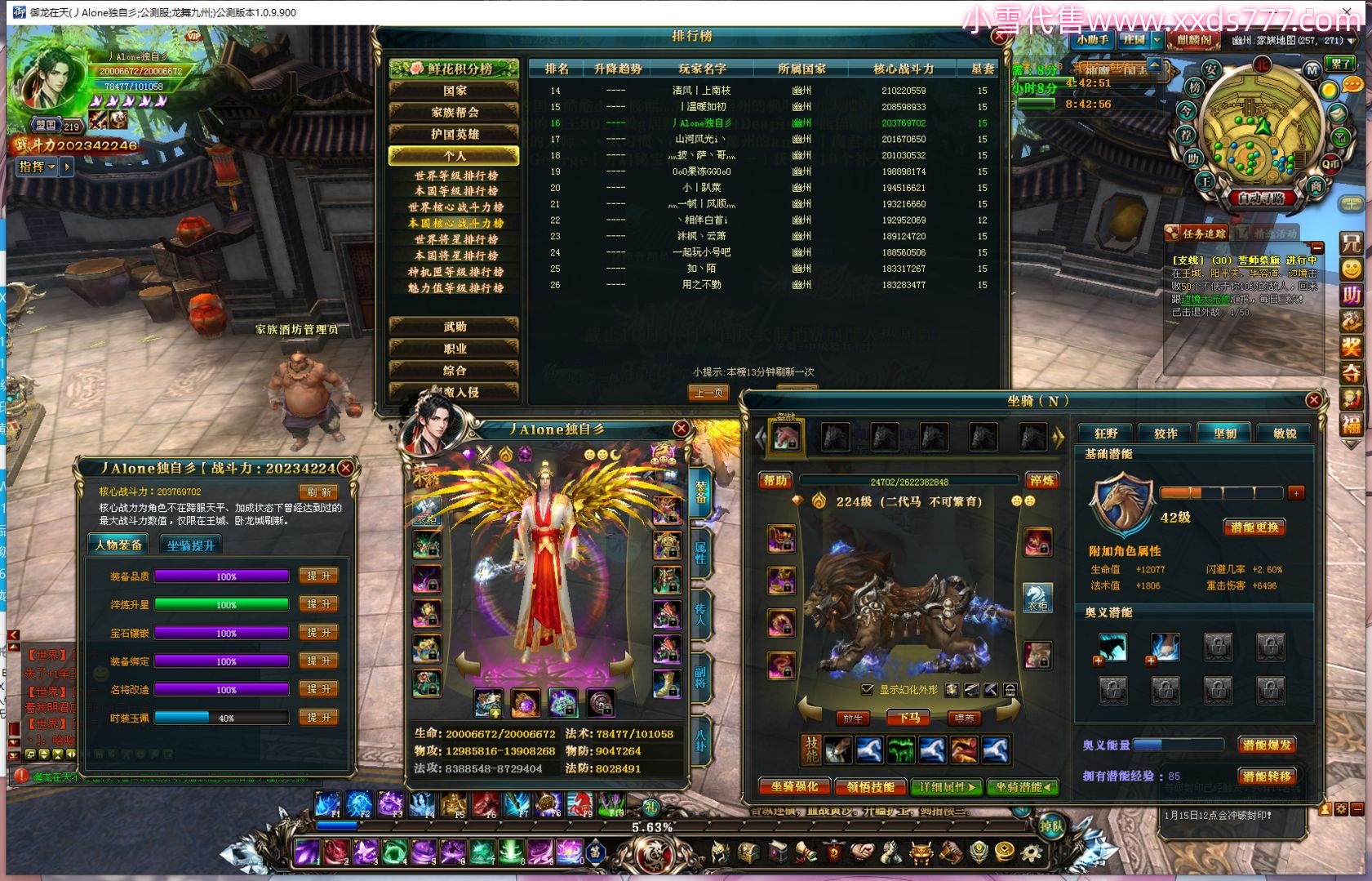 编号W22867 泡泡大王y 龙舞九州 益州 世界排名32名 32603W战力 人物混沌极品橙15X(5件18X) 传人黄金史诗紫15X(5件混沌) 副将史诗紫15X 马黄金加强橙14X(双潜能50级47级) 极品紫16披风 人物星魂16级 传人星魂16级 副将星魂9级 马星魂16级 人物铭刻3件18级1件16级其余15级 点亮16星 马铭刻1件15级其余14级 点亮14星 人物紫龙印 马绿龙印 六等单双属性神圣无瑕石头 黄绿紫孔 已开启永久18星套