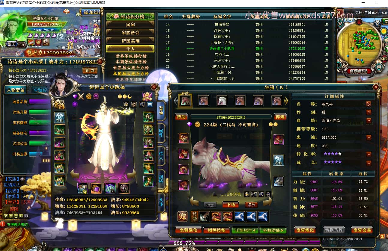 编号W23369 灬莫大侠灬 龙舞九州 益州 本国排名30名 12176W战力 人物史诗紫12X(10件15X5件混沌) 传人精良紫12X 副将精良紫12X 马史诗紫12X 加强紫13披风 人物星魂15级 传人星魂6级 马星魂10级 人物铭刻3件15级其余14级 人物点亮8件14星其余12星 马铭刻12级 点亮12星 人物绿龙印 马黄龙印 五六等单双属性完美无暇神圣石头 蓝白孔