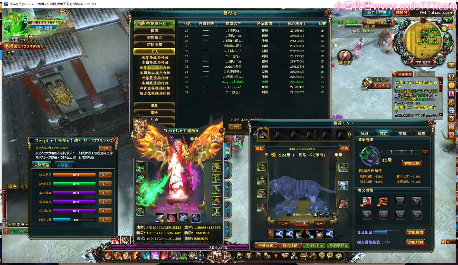 编号Z20153 灬丨武神se丶 逐鹿天下 豫州 世界排名10名 28939W战力 人物混沌极品橙18X 传人黄金精良橙18X(5件混沌) 副将黄金普通橙15X(7件18X) 马黄金极品橙14X(双潜能61级60级) 史诗紫17披风 人物星魂16级 传人星魂16级 副将星魂9级 马星魂16级 人物铭刻18级 人物点亮18星 马铭刻1件15级其余14级 点亮14星 人紫龙印 马绿龙印 六等单双属性神圣完美无暇石头 紫孔 已开4次永久18星套